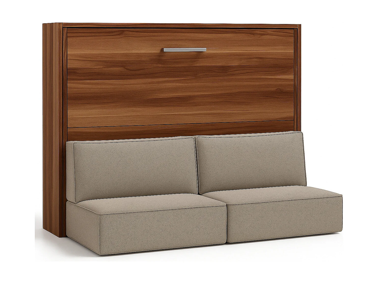 Lit escamotable horizontal LOGIA-140x200-Canapé Beige-Structure Noyer-Version lit+canapé