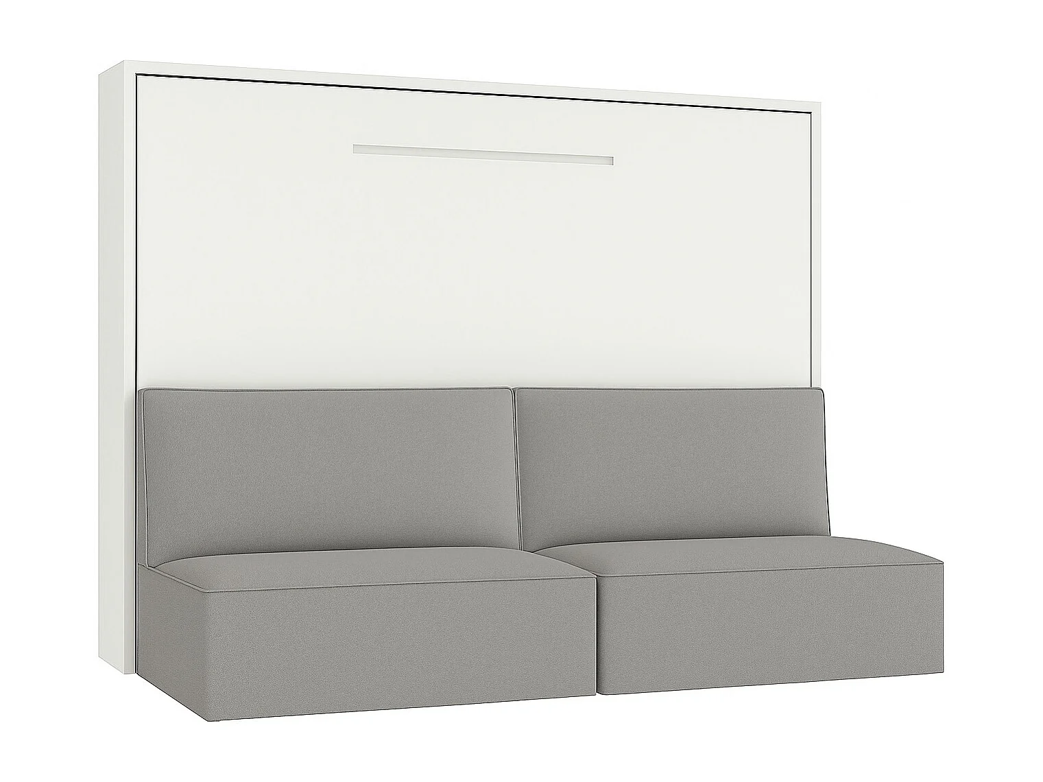 Lit escamotable horizontal LOGIA-140x200-Canapé Gris clair-Structure Blanche-Version lit+canapé