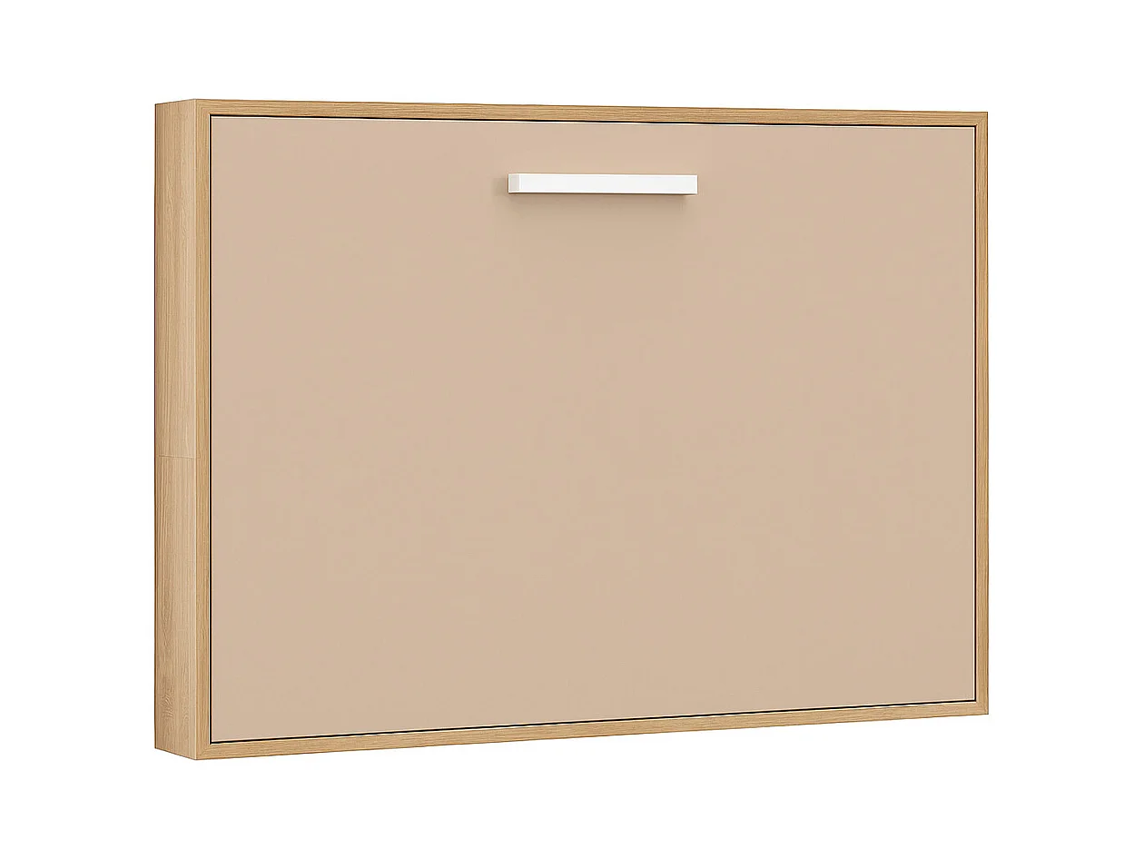 Lit escamotable horizontal OPTIMA-140x190-Cadre Chêne clair-Façade Vison