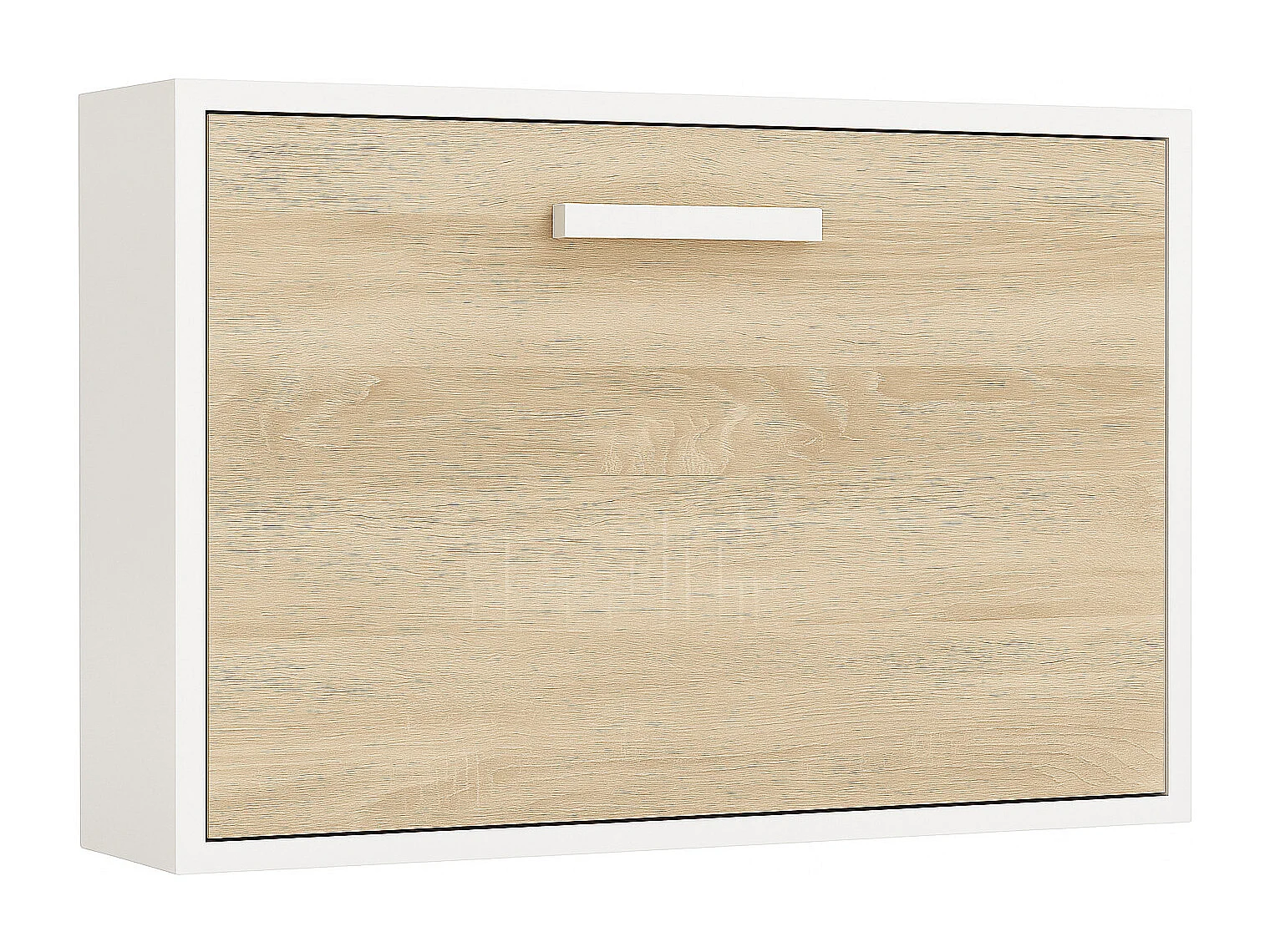 Lit escamotable horizontal OPTIMA-Avec matelas-90x180-Cadre Blanc-Façade Chêne clair