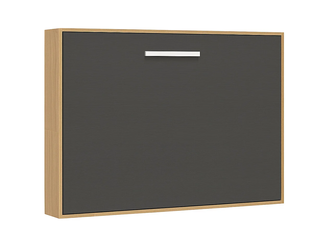 Lit escamotable horizontal OPTIMA-Avec matelas-90x190-Cadre Chêne clair-Façade Anthracite