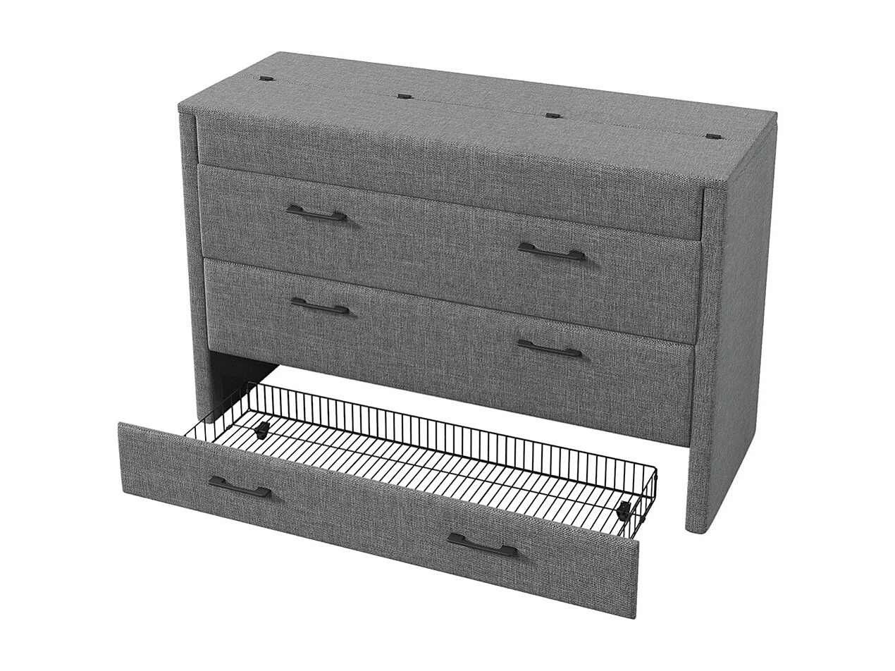 Lit escamotable mobile 140x200 cm tiroir rangement pied USB Type-C sans matelas lin gris