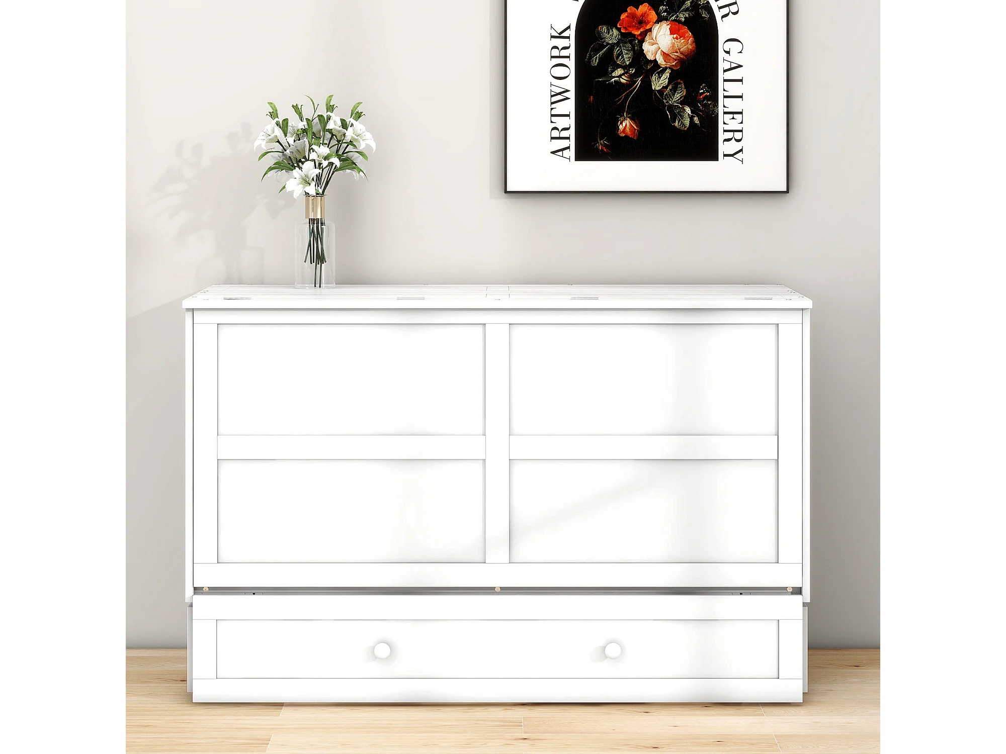 Lit escamotable mobile 140x200cm, avec tiroirs et étagère, convertible en lit plateforme, pin + MDF, blanc, sans matelas
