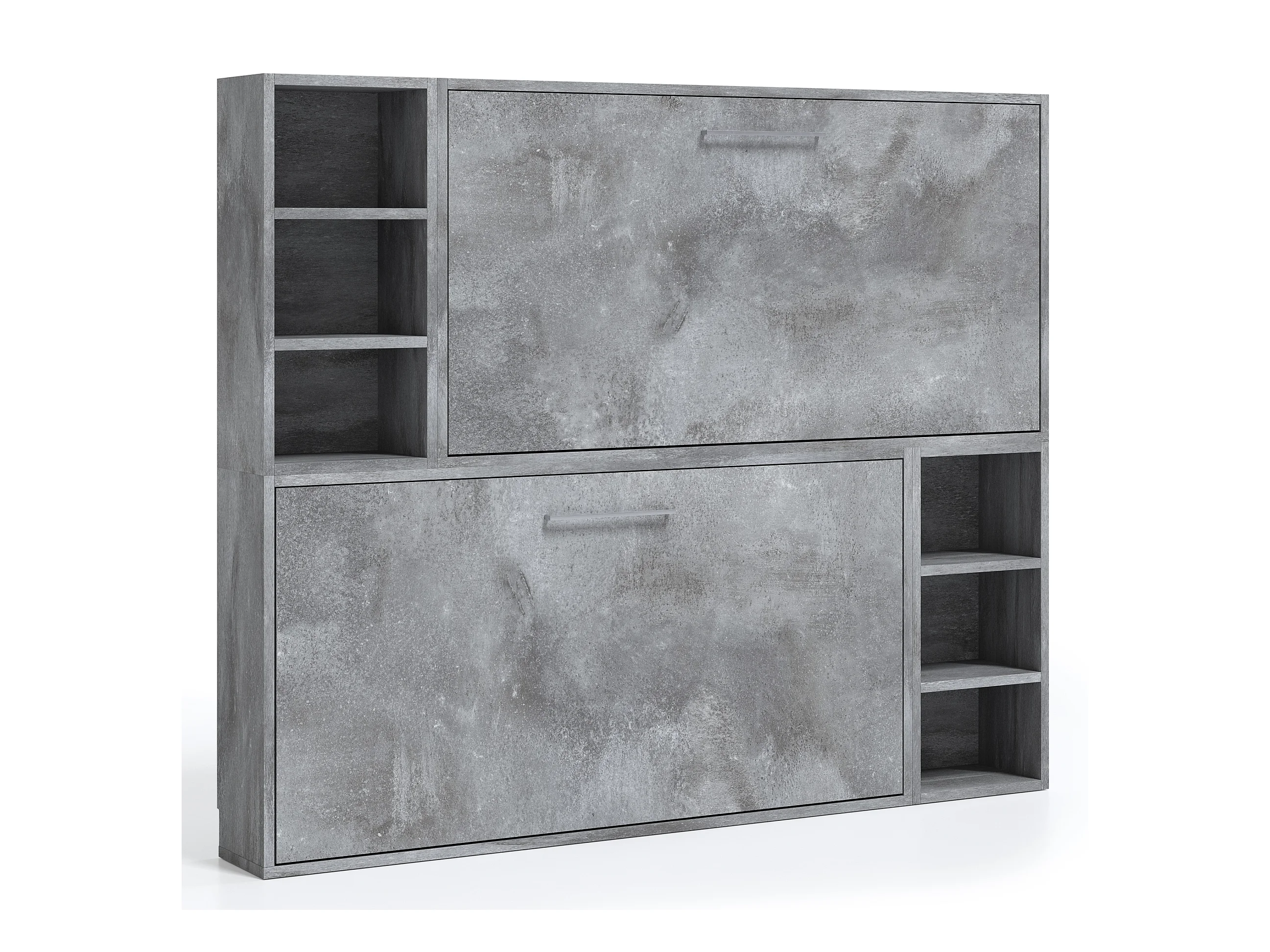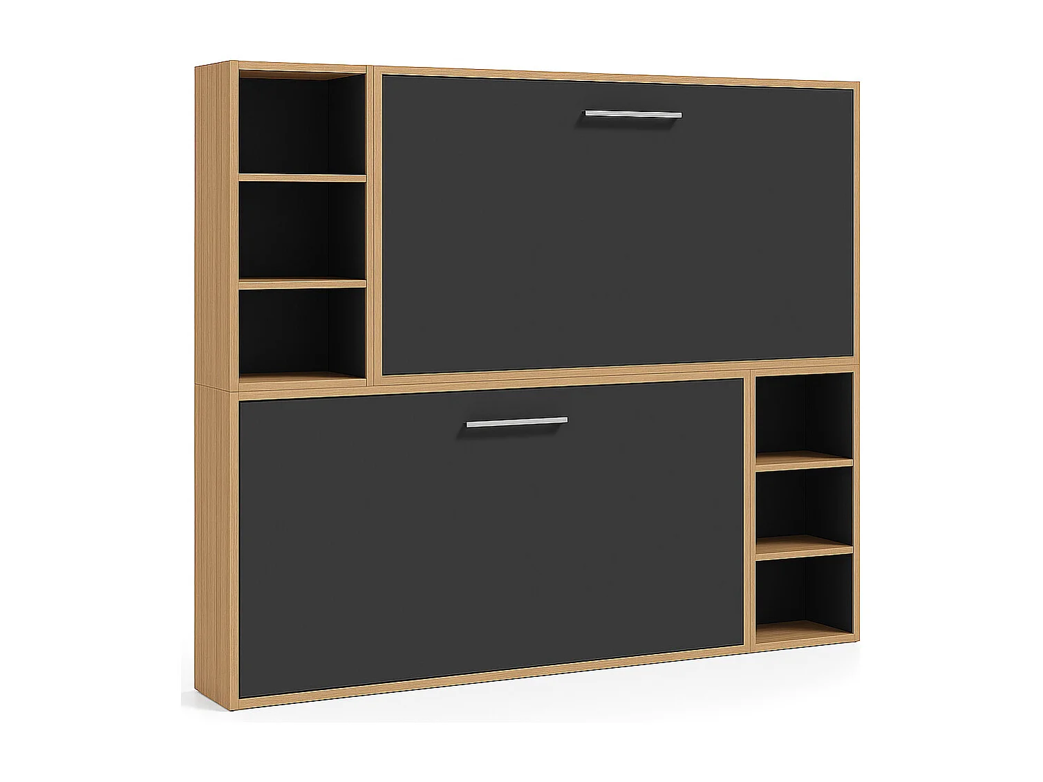 Lit escamotable superposé horizontal avec étagères BINKA-2 matelas-90x180-Cadre Chêne clair-Façade Anthracite