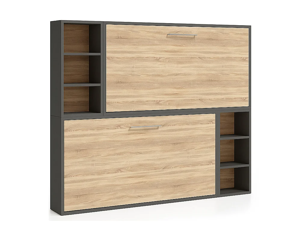 Lit escamotable superposé horizontal avec étagères BINKA-80x190-Cadre Taupe-Façade Taupe