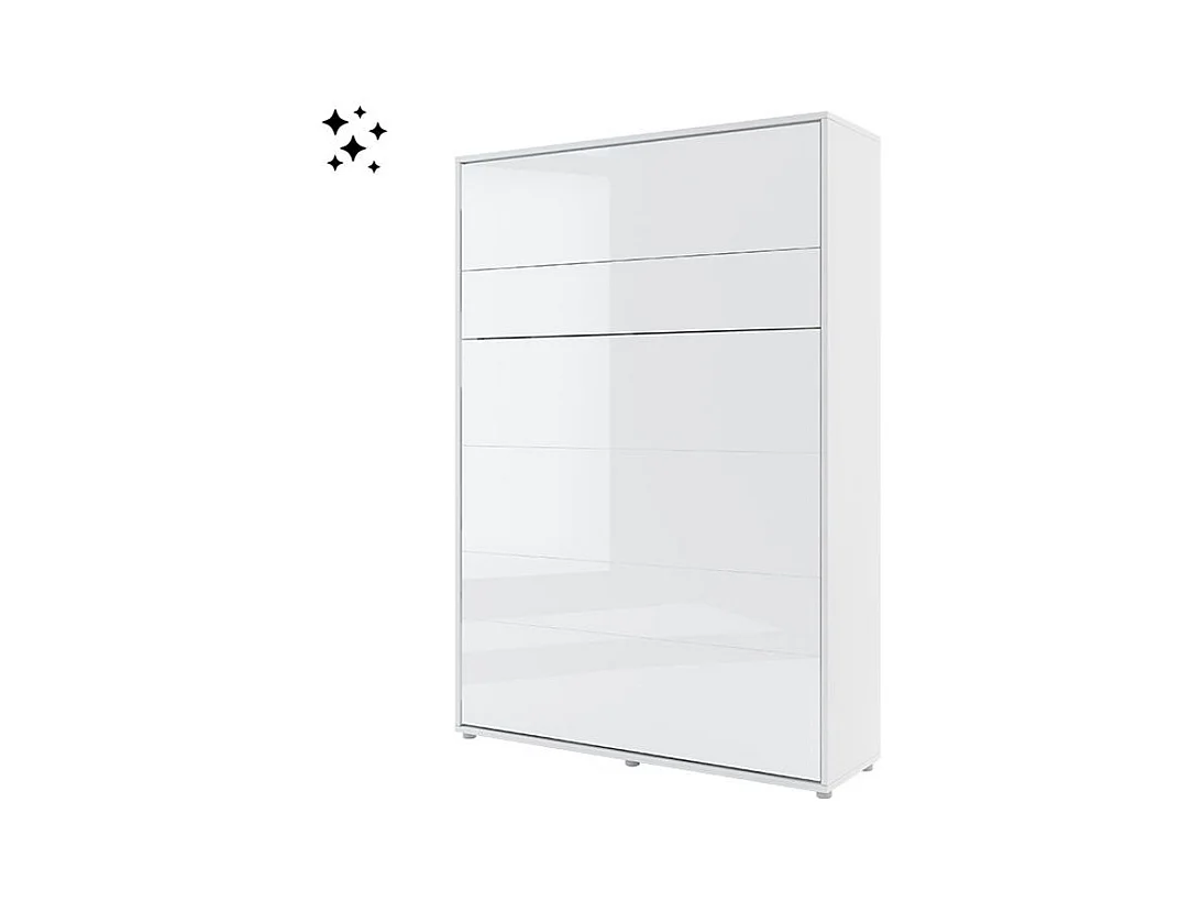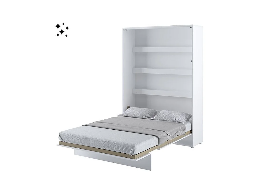 Lit escamotable vertical avec étagères blanc brillant Noby 120x200-Avec Led et 2 veilleuses