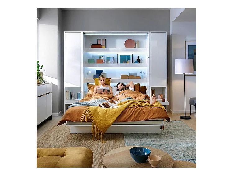 Lit escamotable vertical avec étagères blanc brillant Noby 120x200-Avec Led sans veilleuses