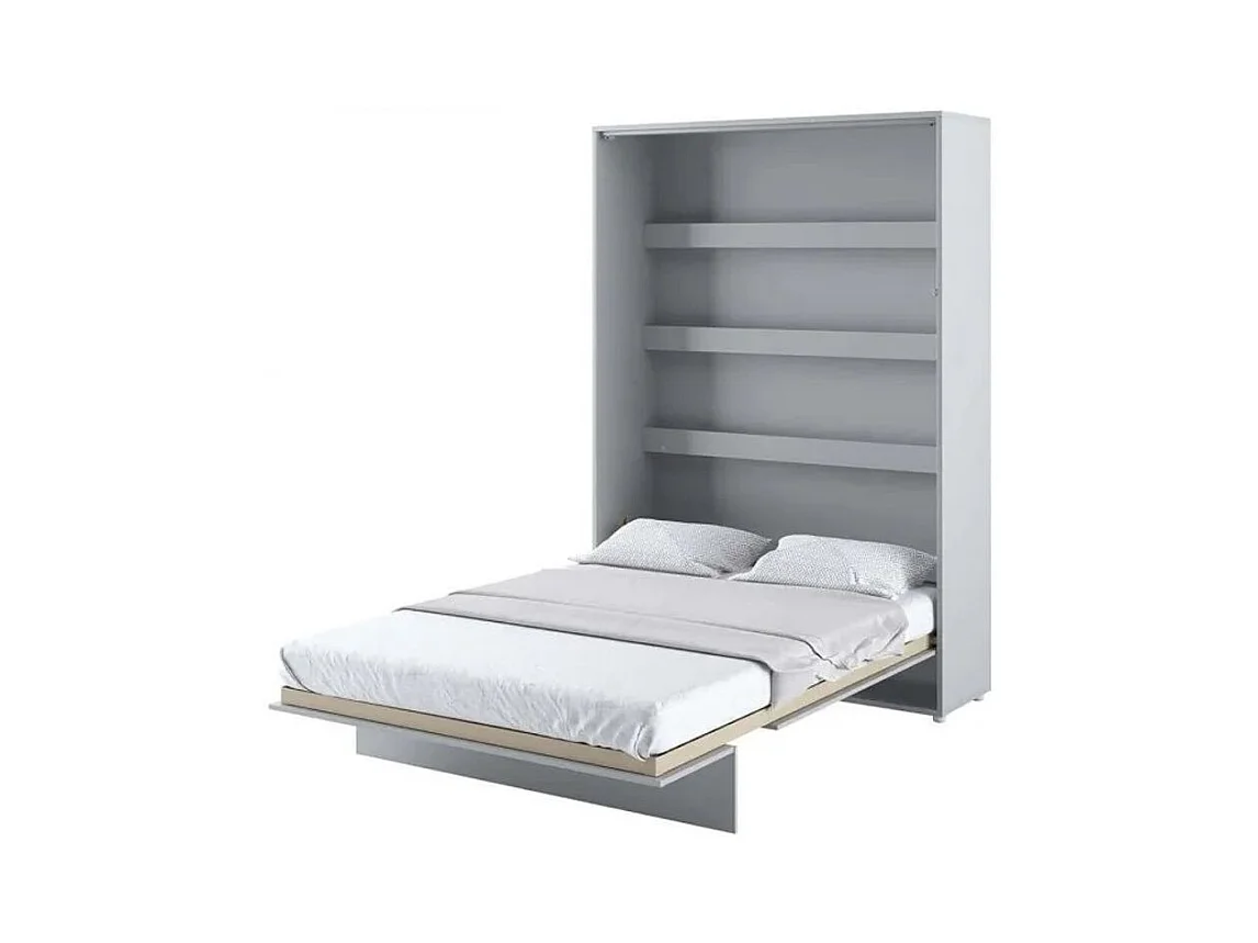 Lit escamotable vertical avec étagères blanc mat Noby 160x200-Avec matelas