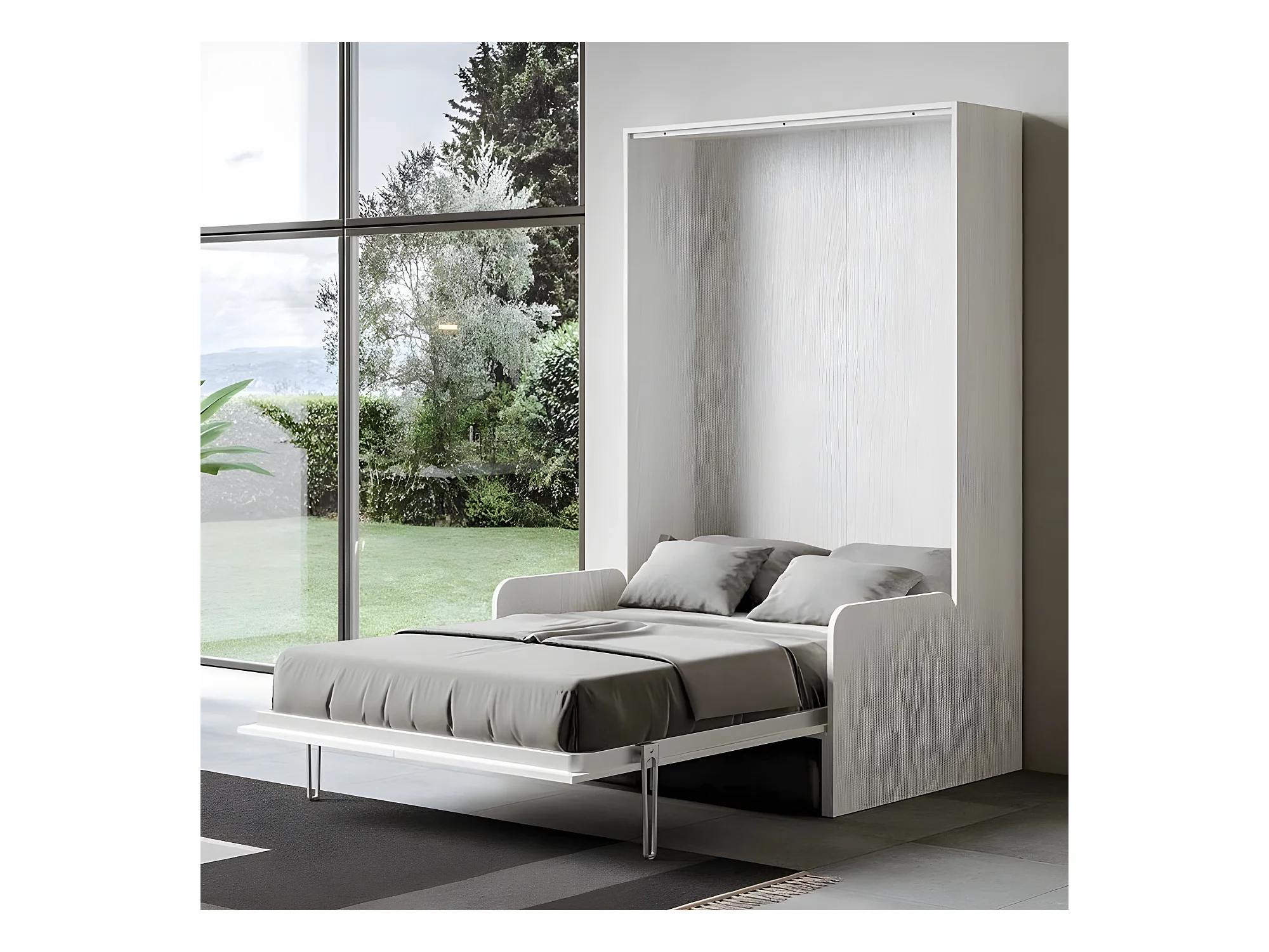 Lit escamotable vertical blanc avec canapé tissu Bounto 140x190 de tissu-Canapé 21