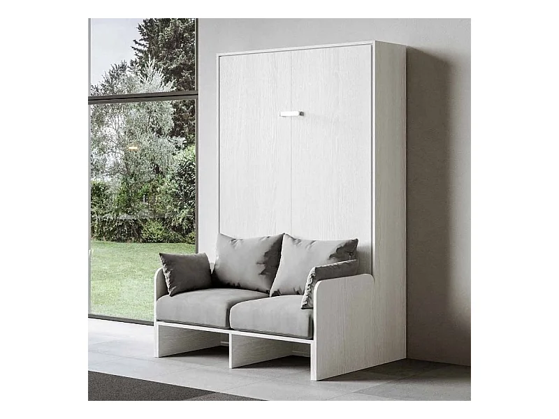 Lit escamotable vertical blanc avec canapé tissu Bounto 140x190 de tissu-Canapé 34