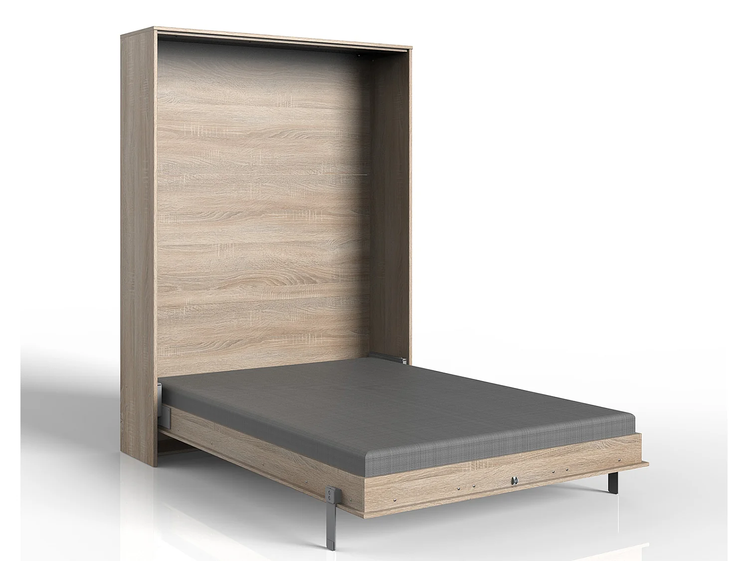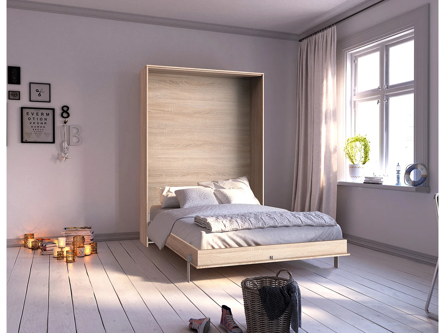 Lit escamotable vertical coloris imitation chêne - L. 152 x H. 213 x P. 43-217 cm