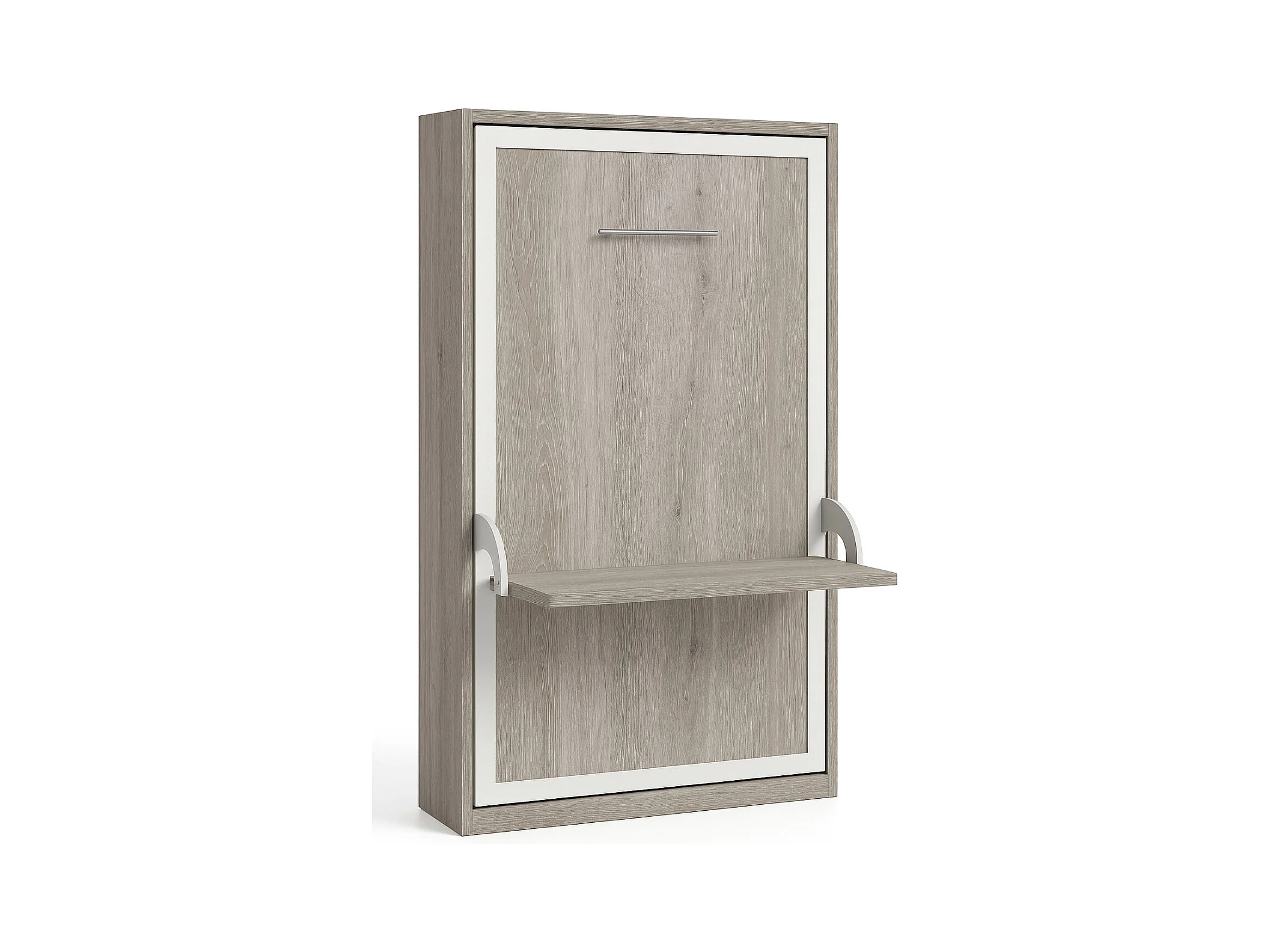 Lit escamotable vertical avec bureau STUDANTE-90x200-Façade Chêne gris