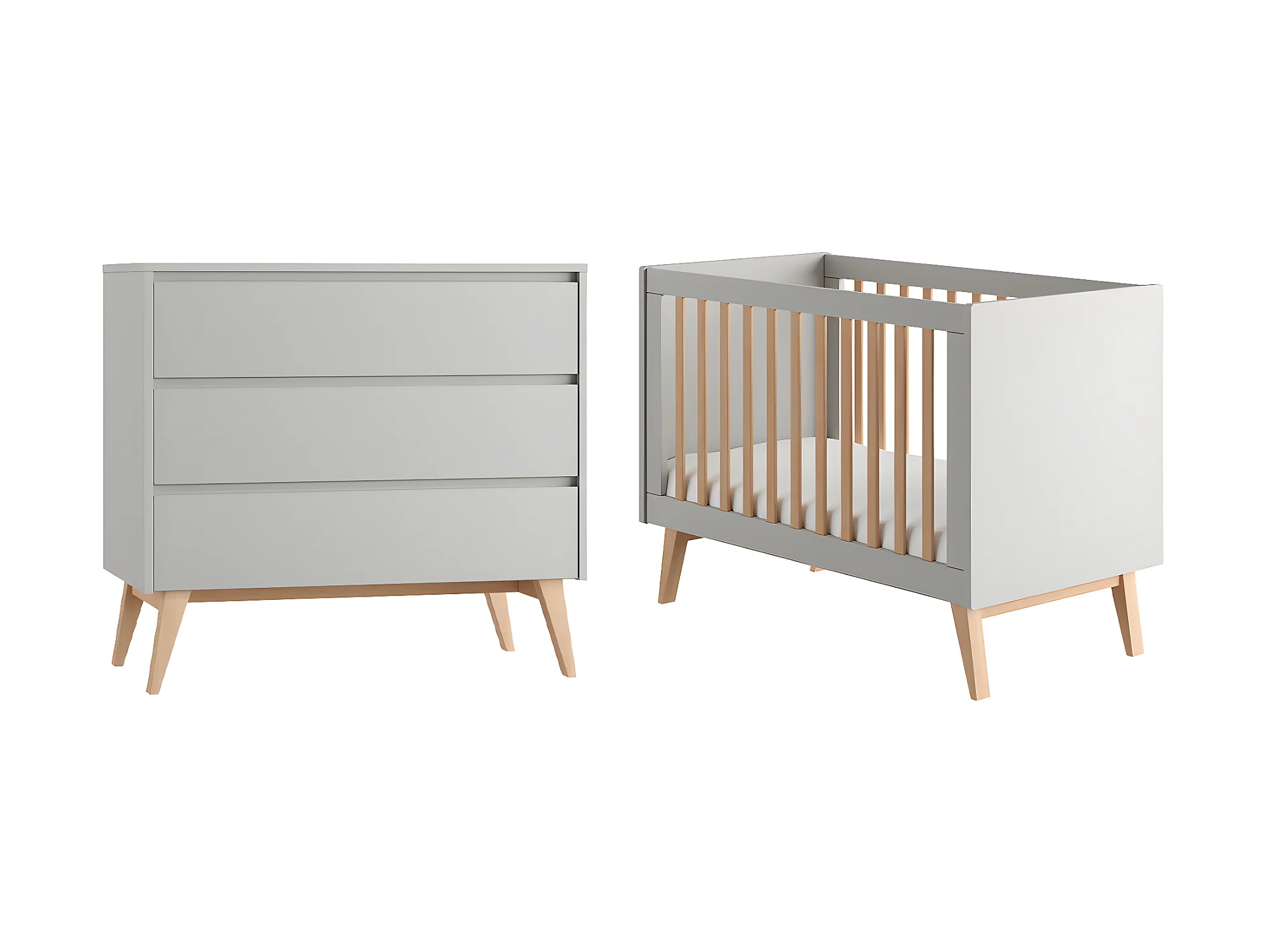 Lit évolutif 60x120 et commode 3 tiroirs Swing Gris et bois