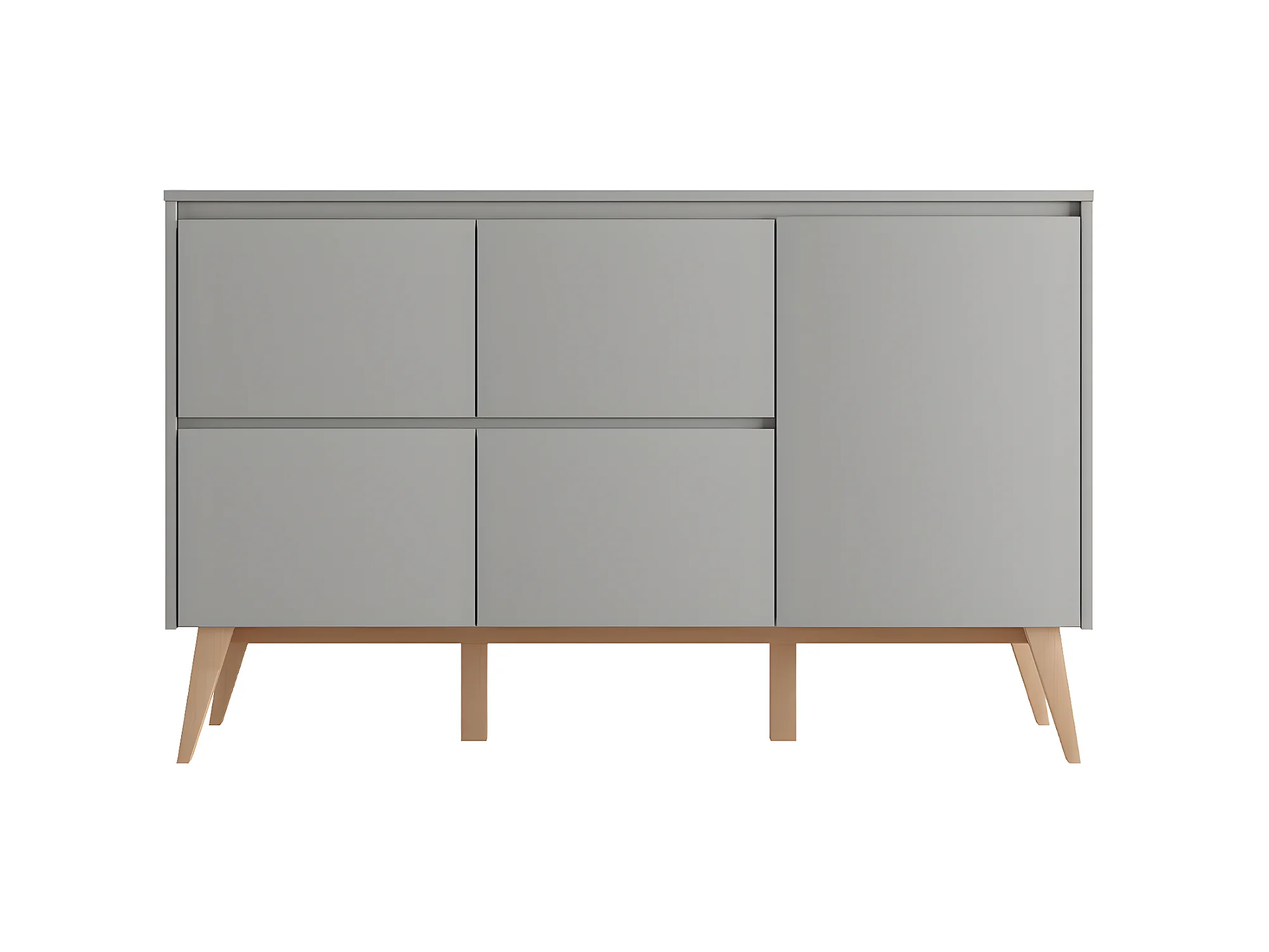Lit évolutif 60x120 et commode 4 tiroirs 1 porte Swing Gris et bois
