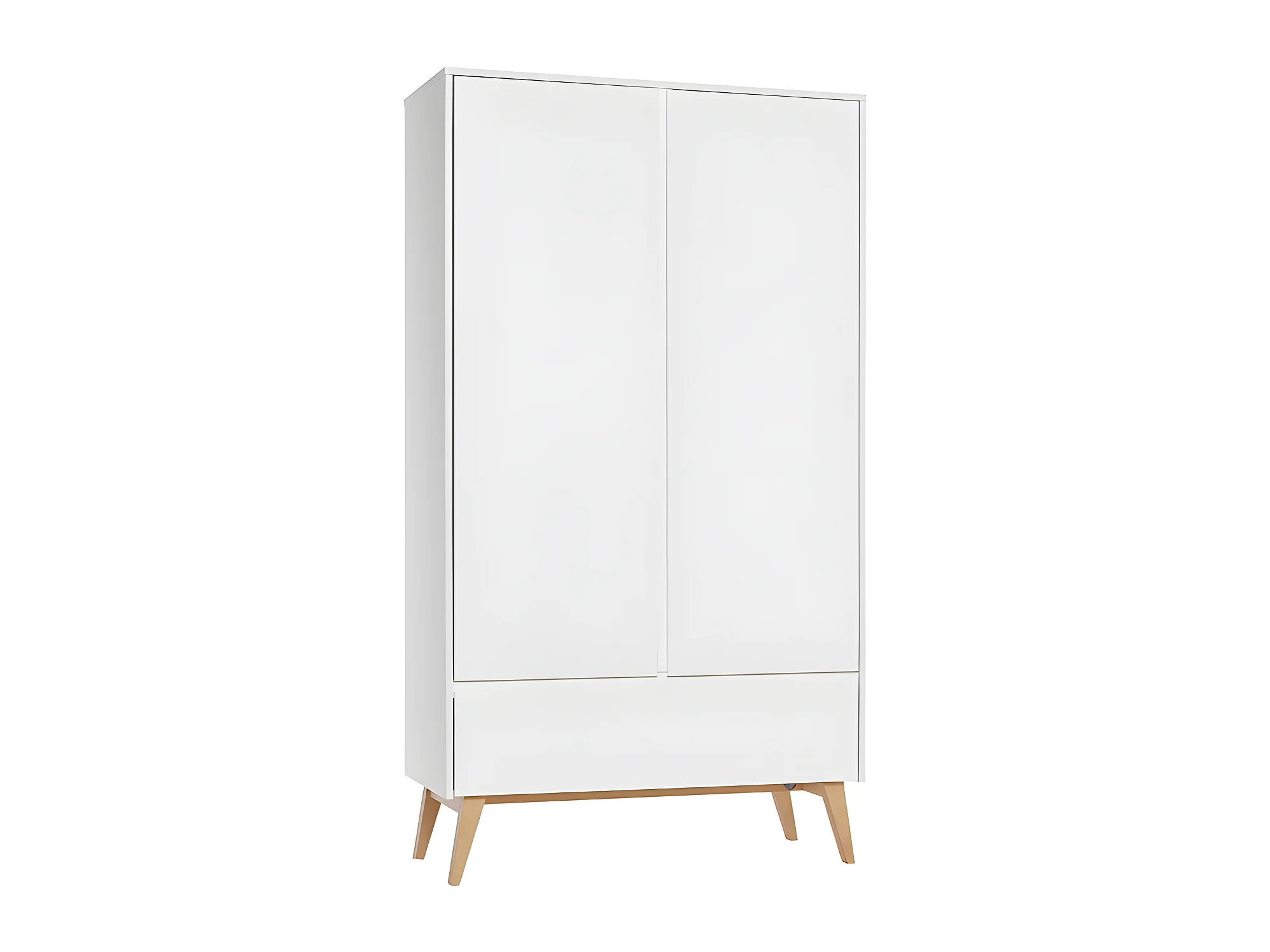 Lit évolutif 70x140 et armoire 2 portes Swing - Blanc et bois