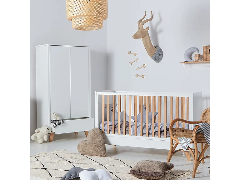 Lit évolutif 70x140 et armoire 2 portes Zara Blanc