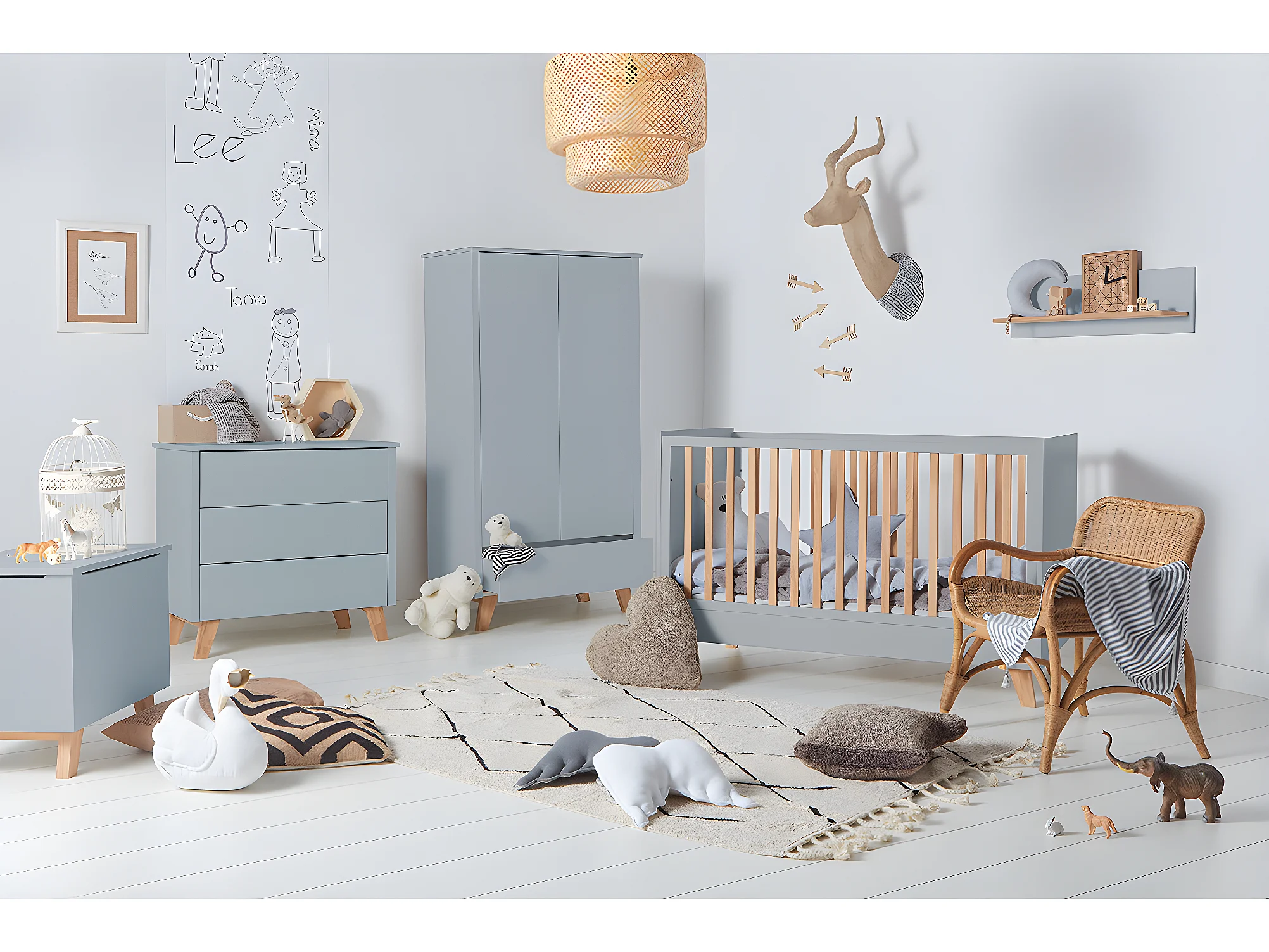 Lit évolutif 70x140 et armoire 2 portes Zara Gris
