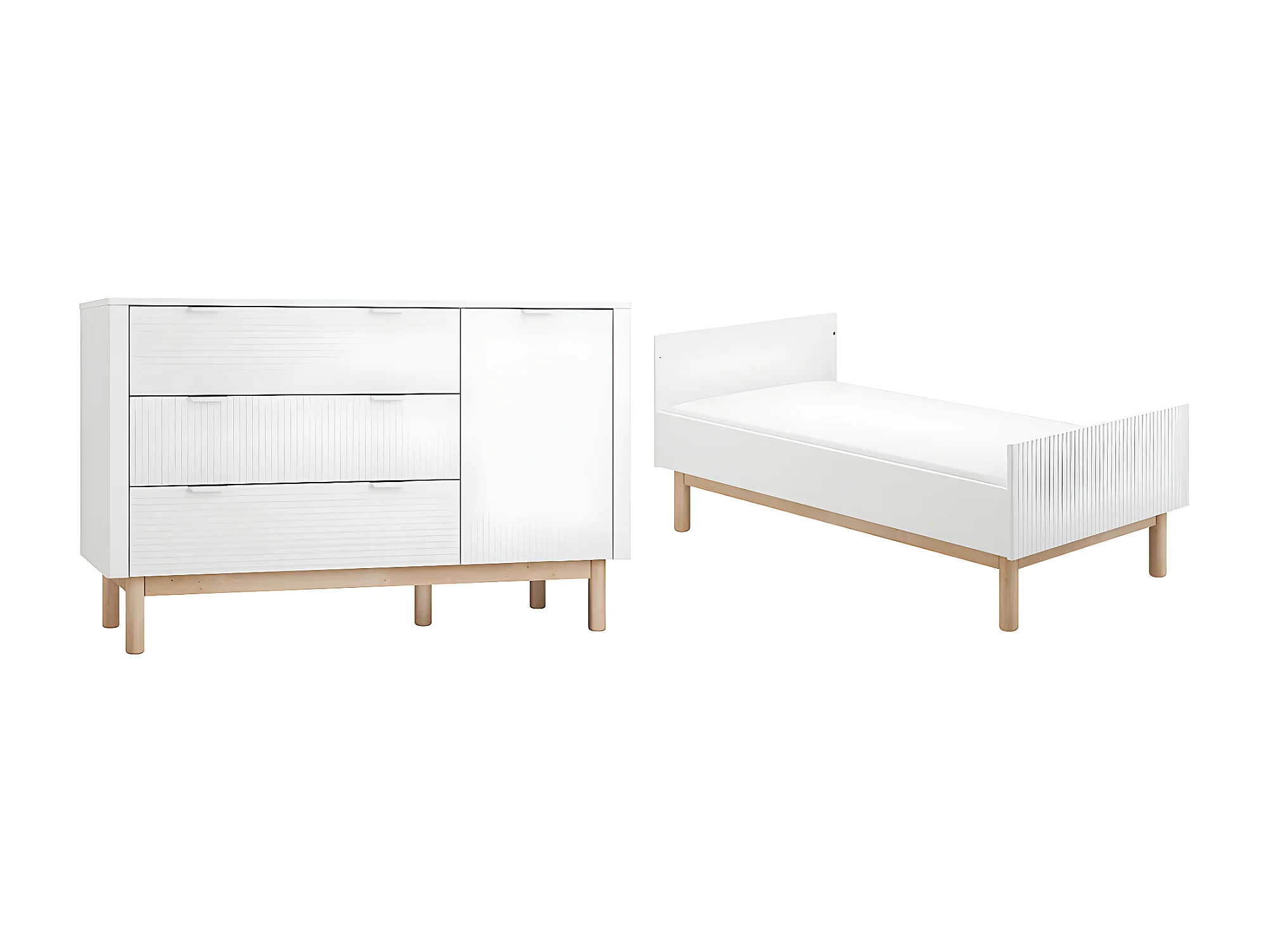 Lit évolutif 70x140 et commode 3 tiroirs 1 porte Miloo Blanc