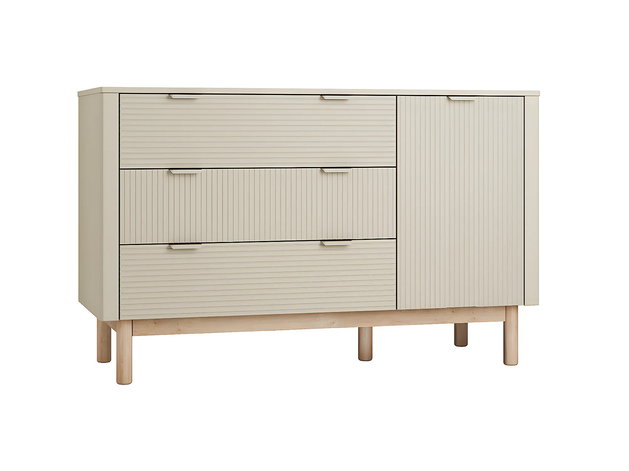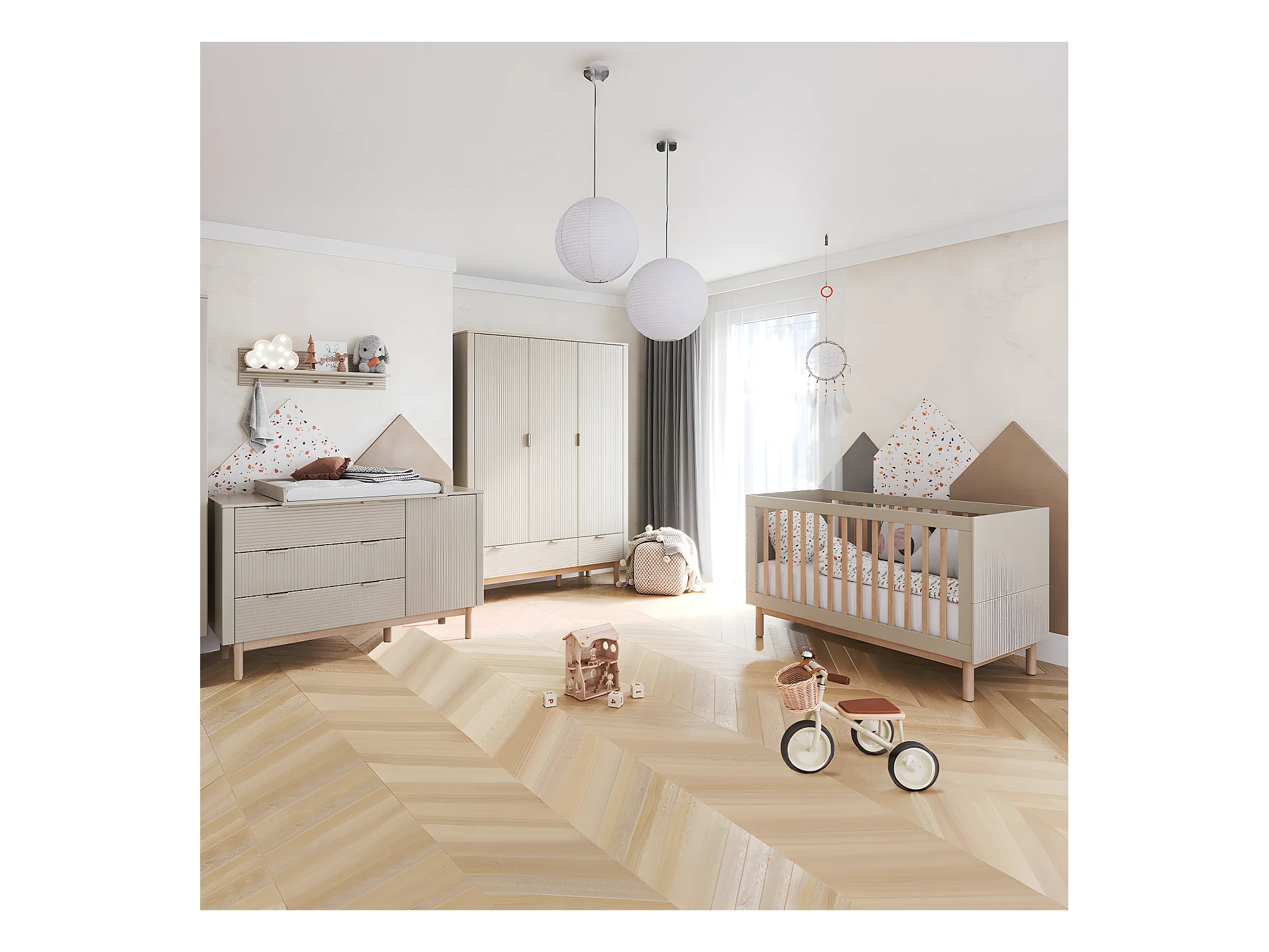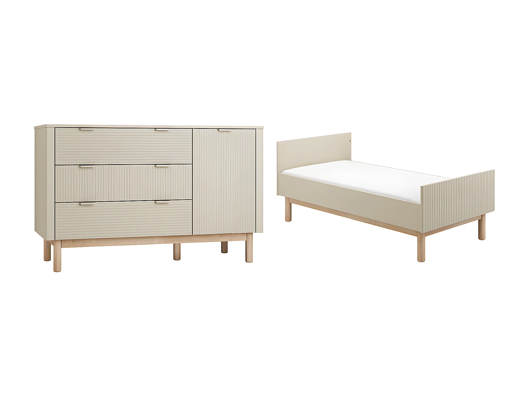 Lit évolutif 70x140 et commode 3 tiroirs 1 porte Miloo Champagne
