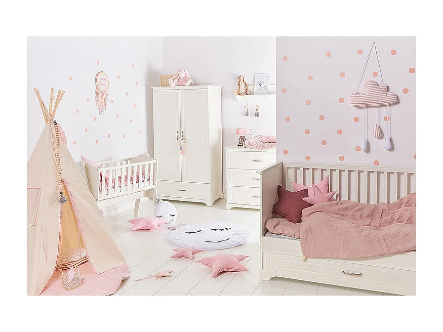 Lit évolutif 70x140 et commode 3 tiroirs Melody Blanc