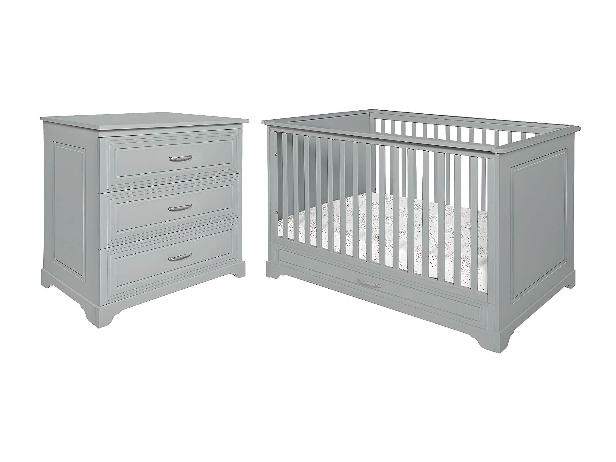 Lit évolutif 70x140 et commode 3 tiroirs Melody Gris