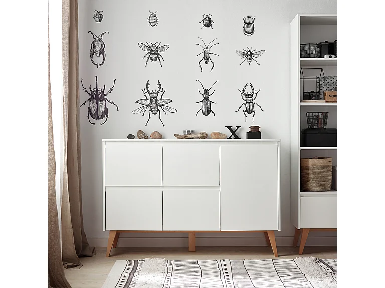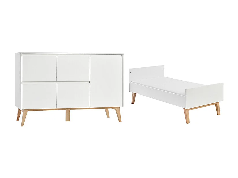 Lit évolutif 70x140 et commode 4 tiroirs 1 porte Swing - Blanc et bois