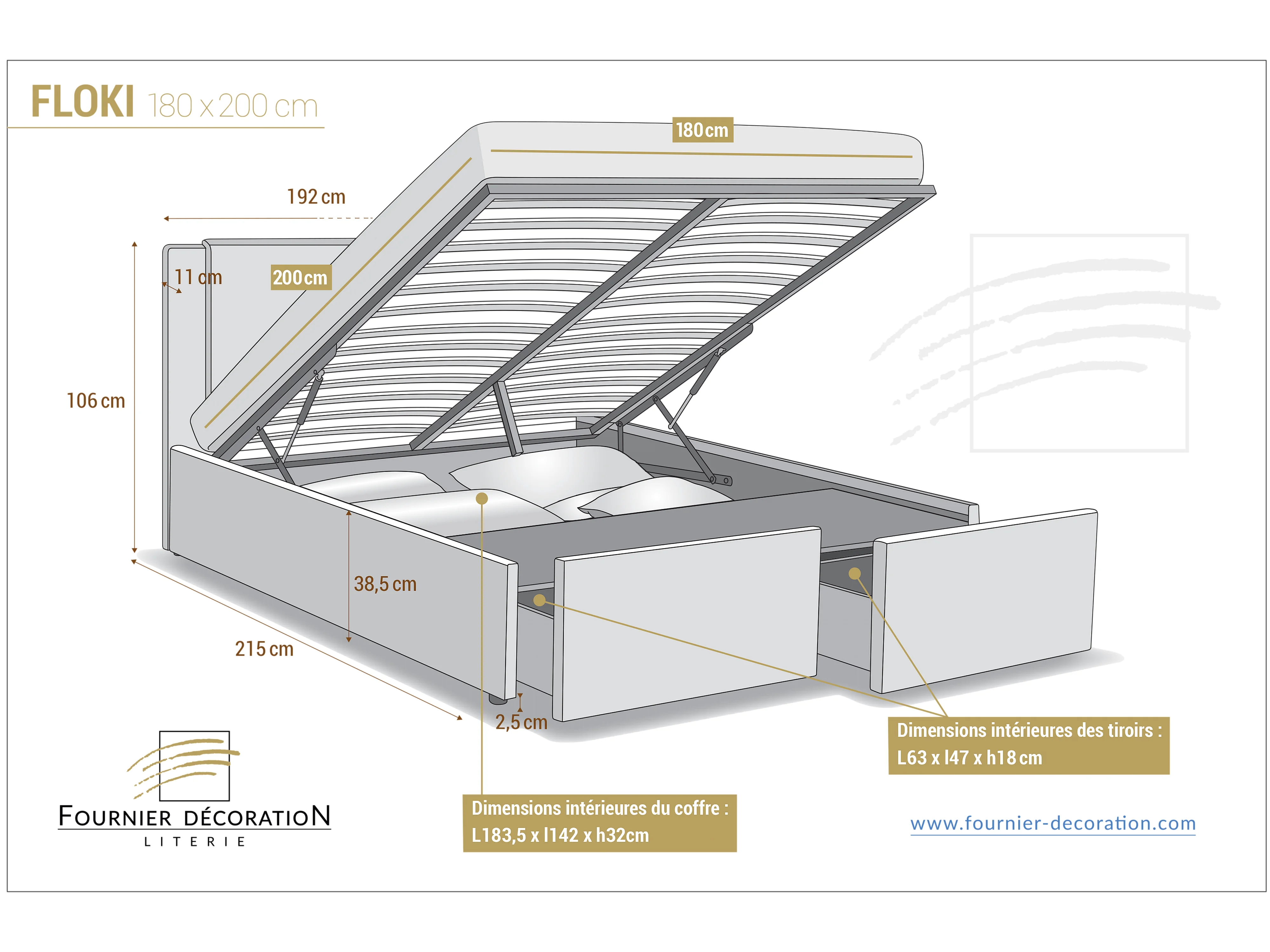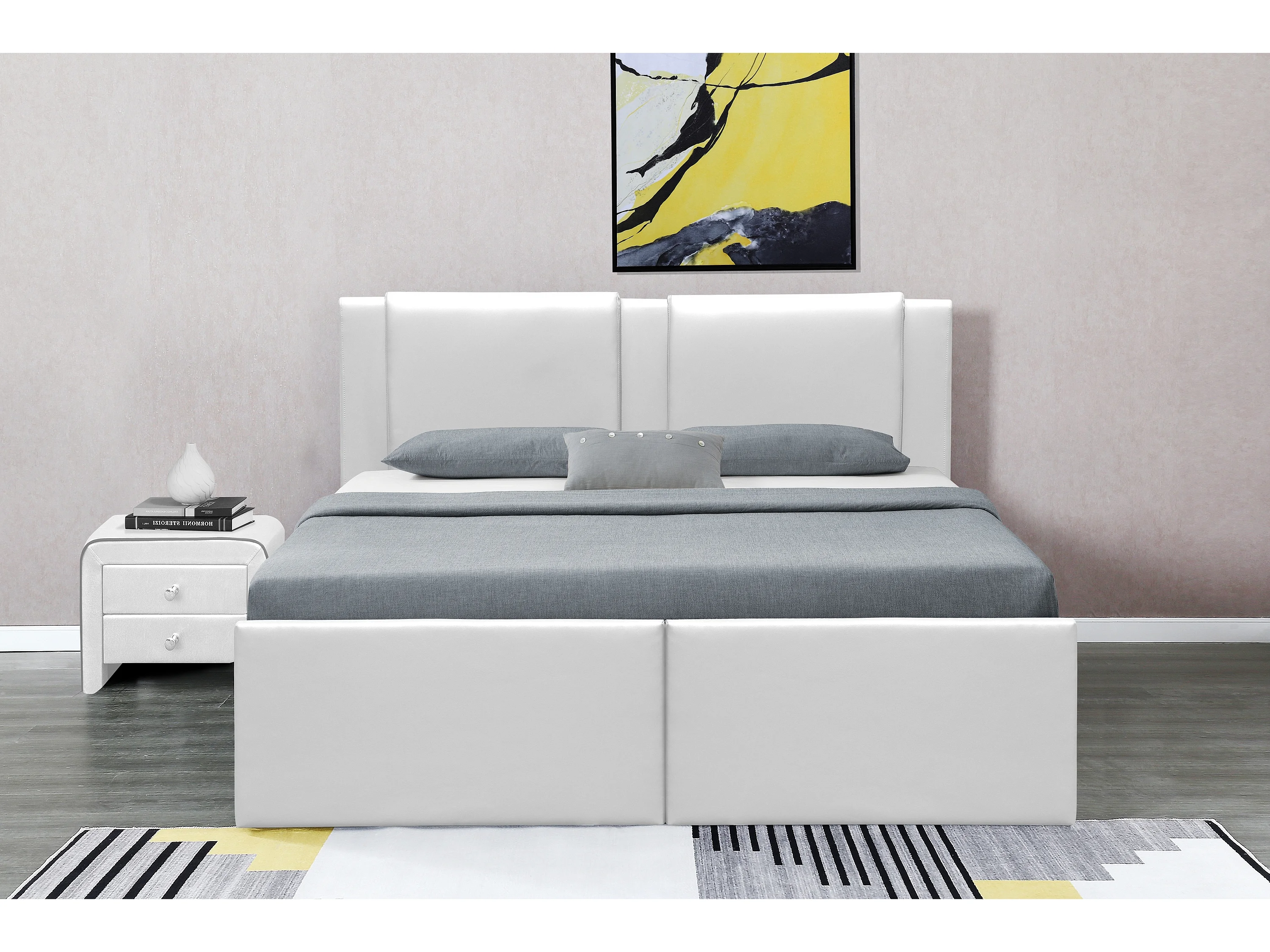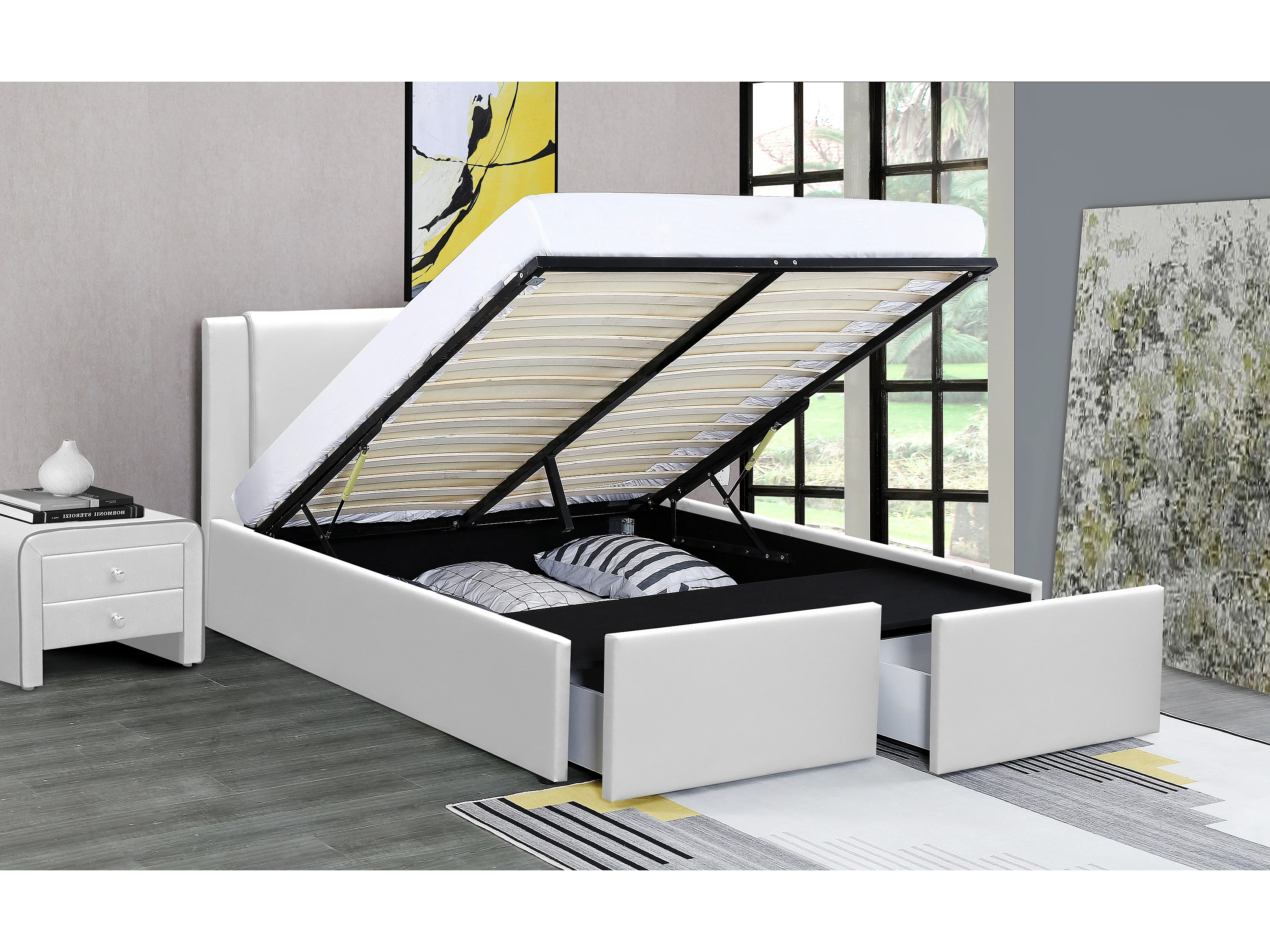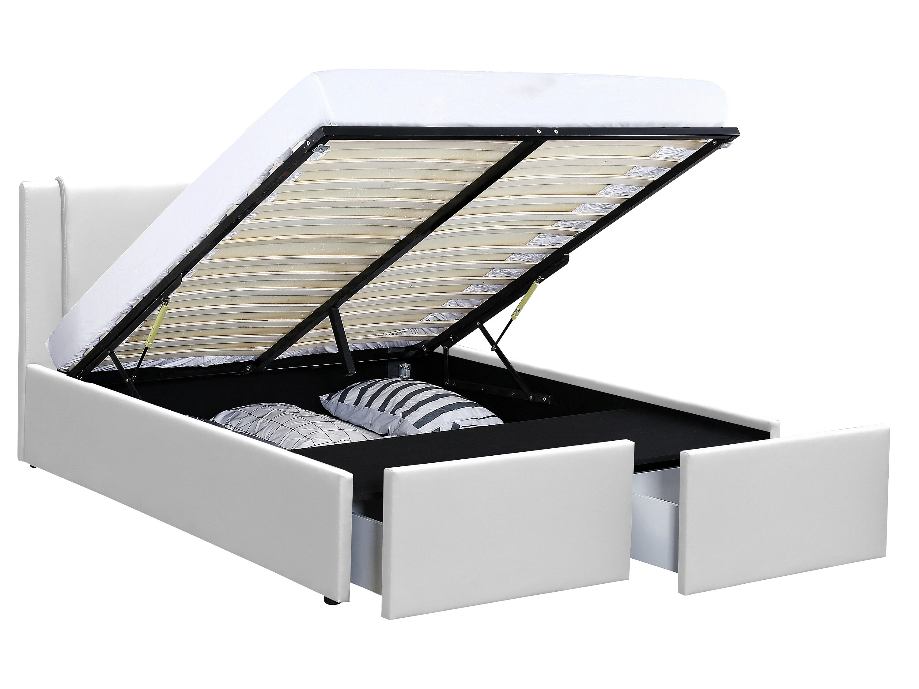 Lit Floki Coffre Pu Blanc 180x200 cm 2 Tiroirs