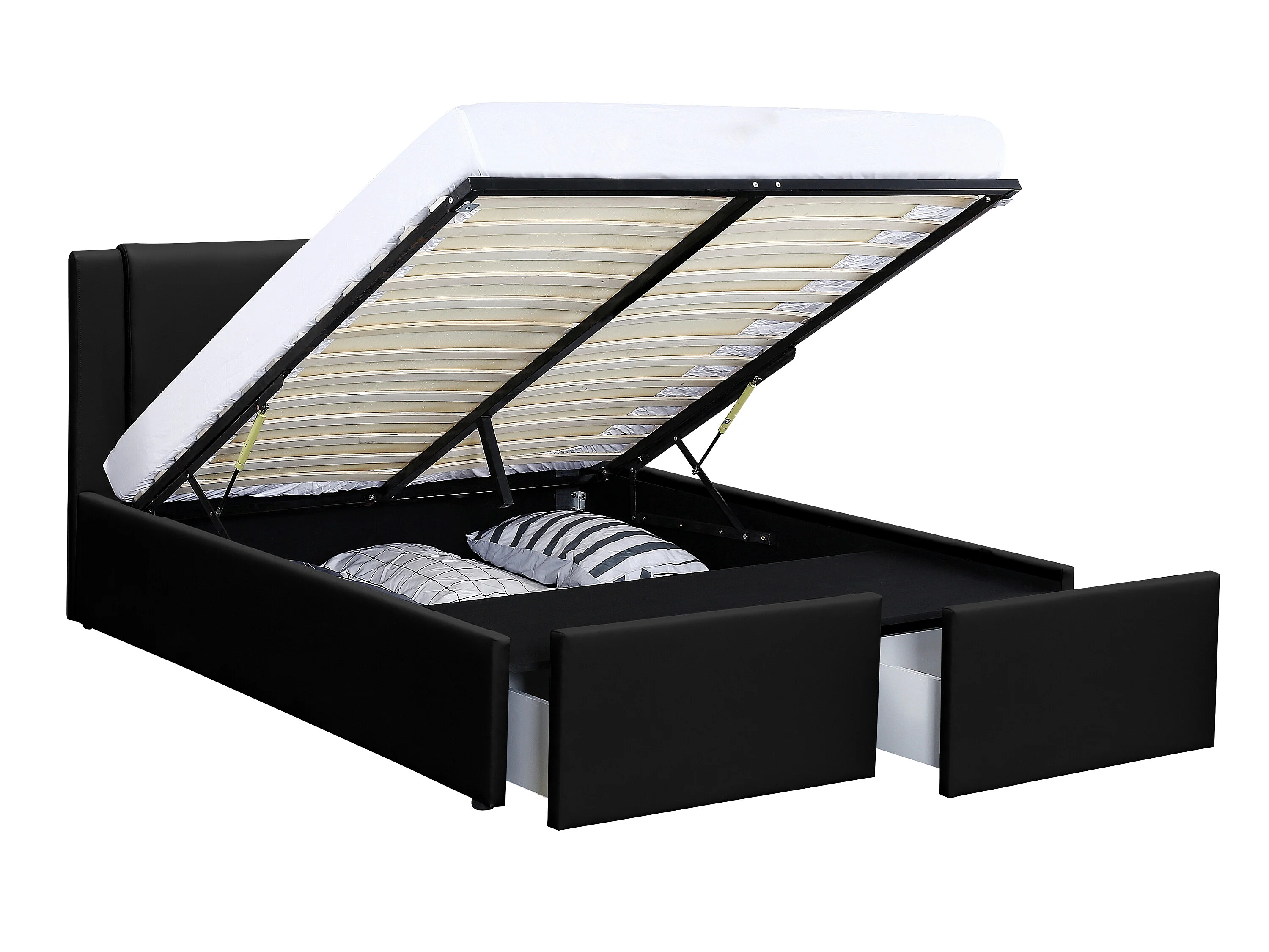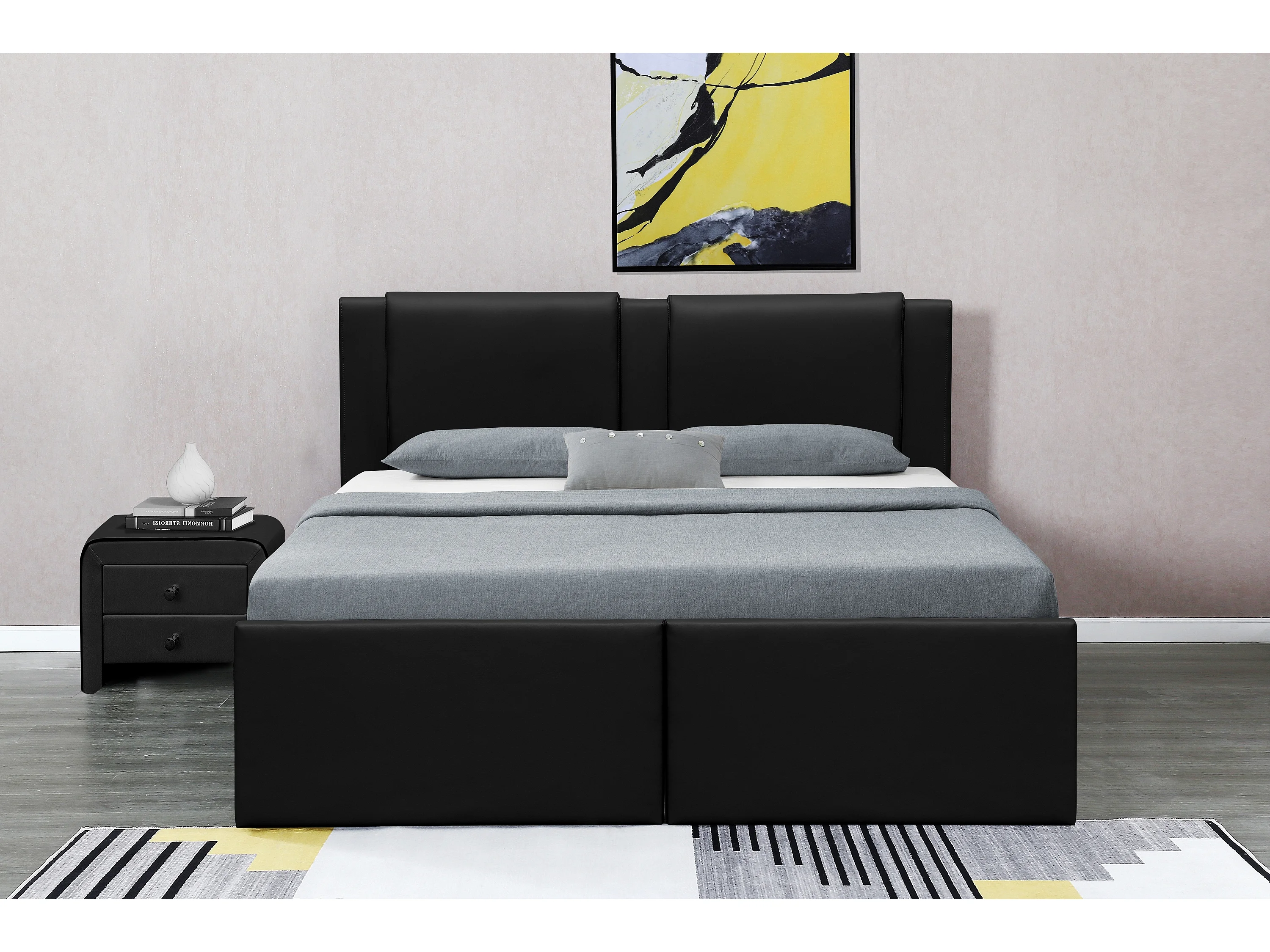 Lit Floki Coffre Pu Noir 160x200 cm 2 Tiroirs