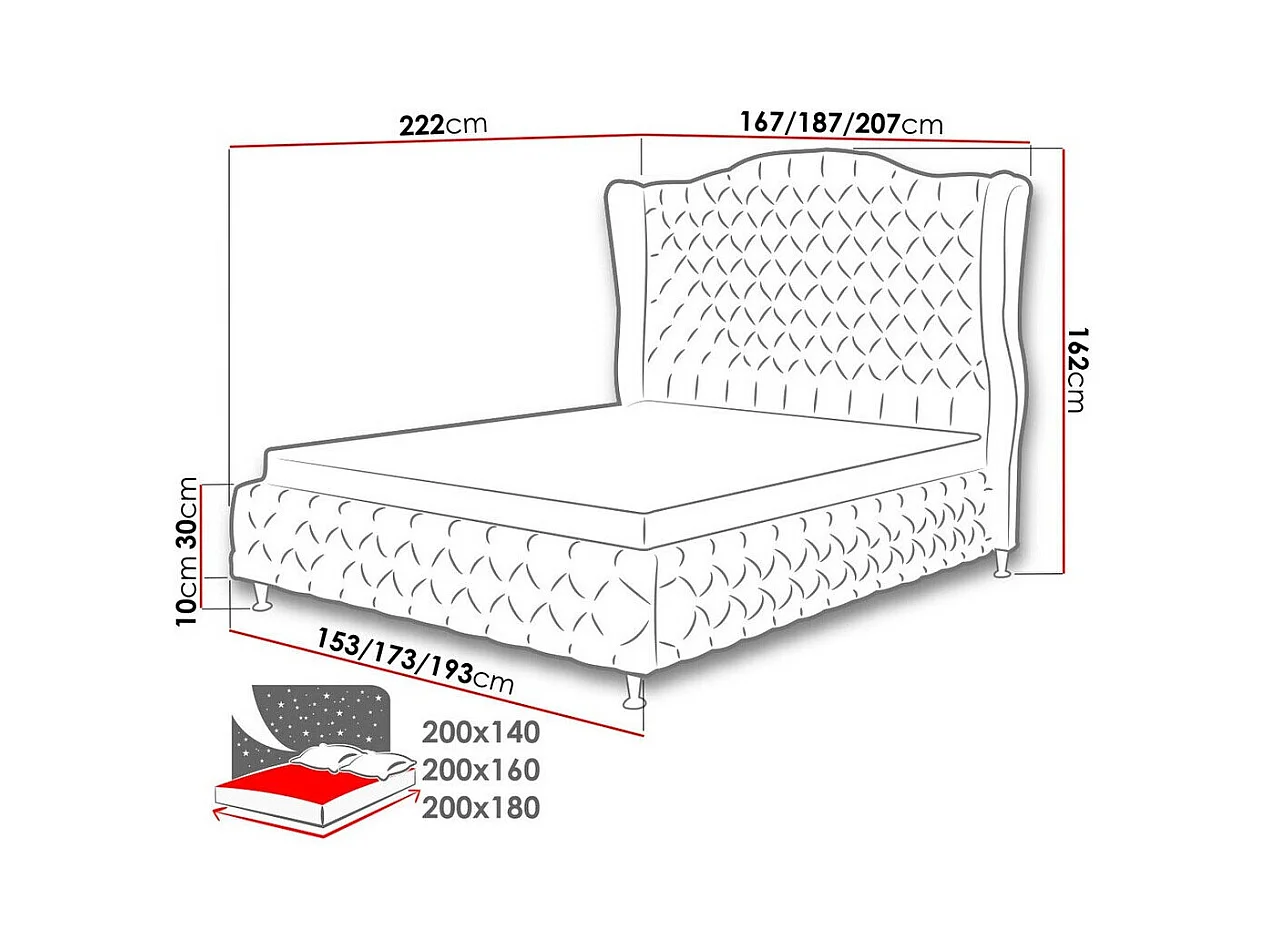 Lit Florence 102, Double, Vert, 180x200, Tapisserie, 207x222x162cm