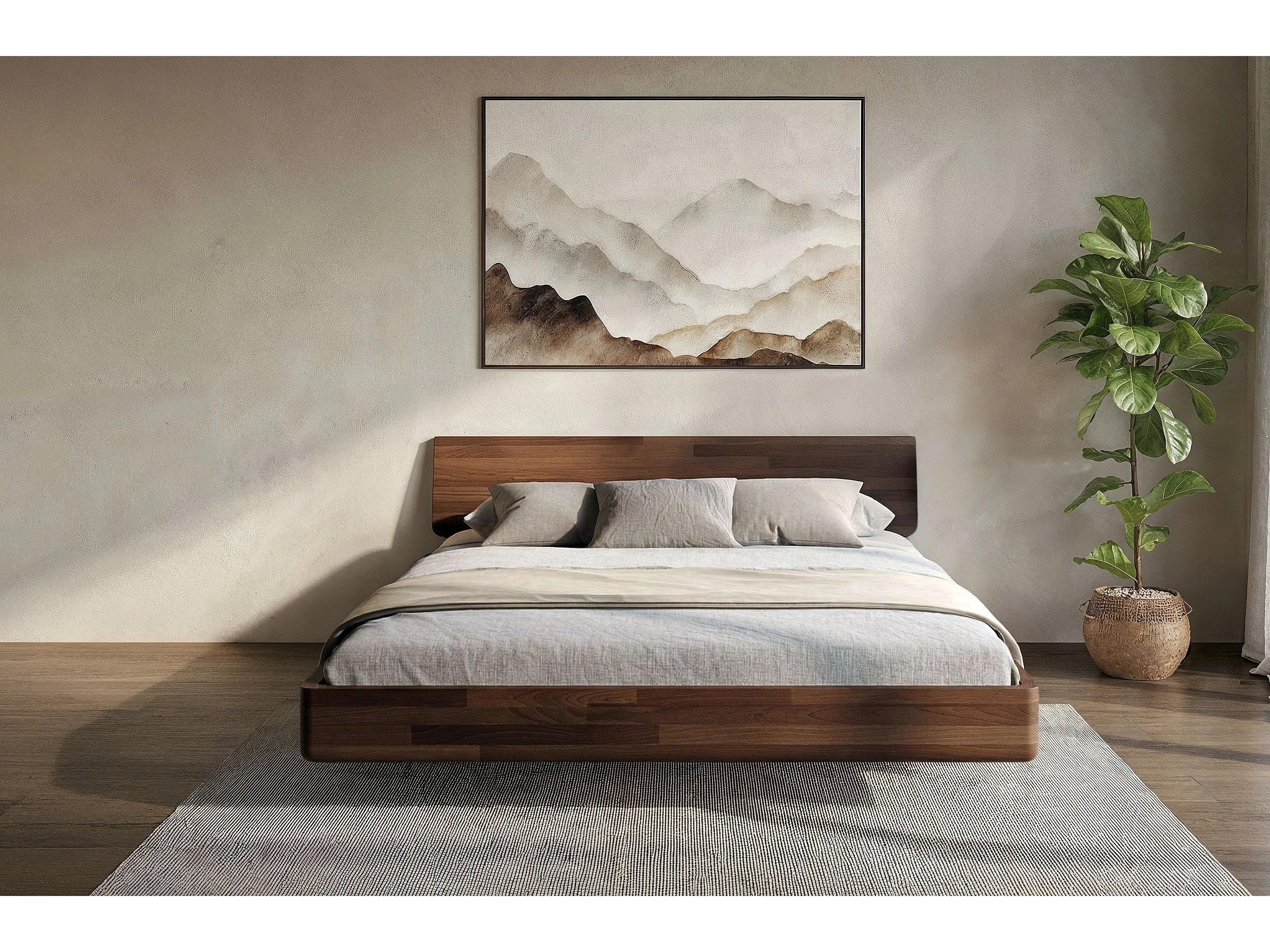 Lit flottant en hêtre massif LENA / 120x200 cm, couleur noyer