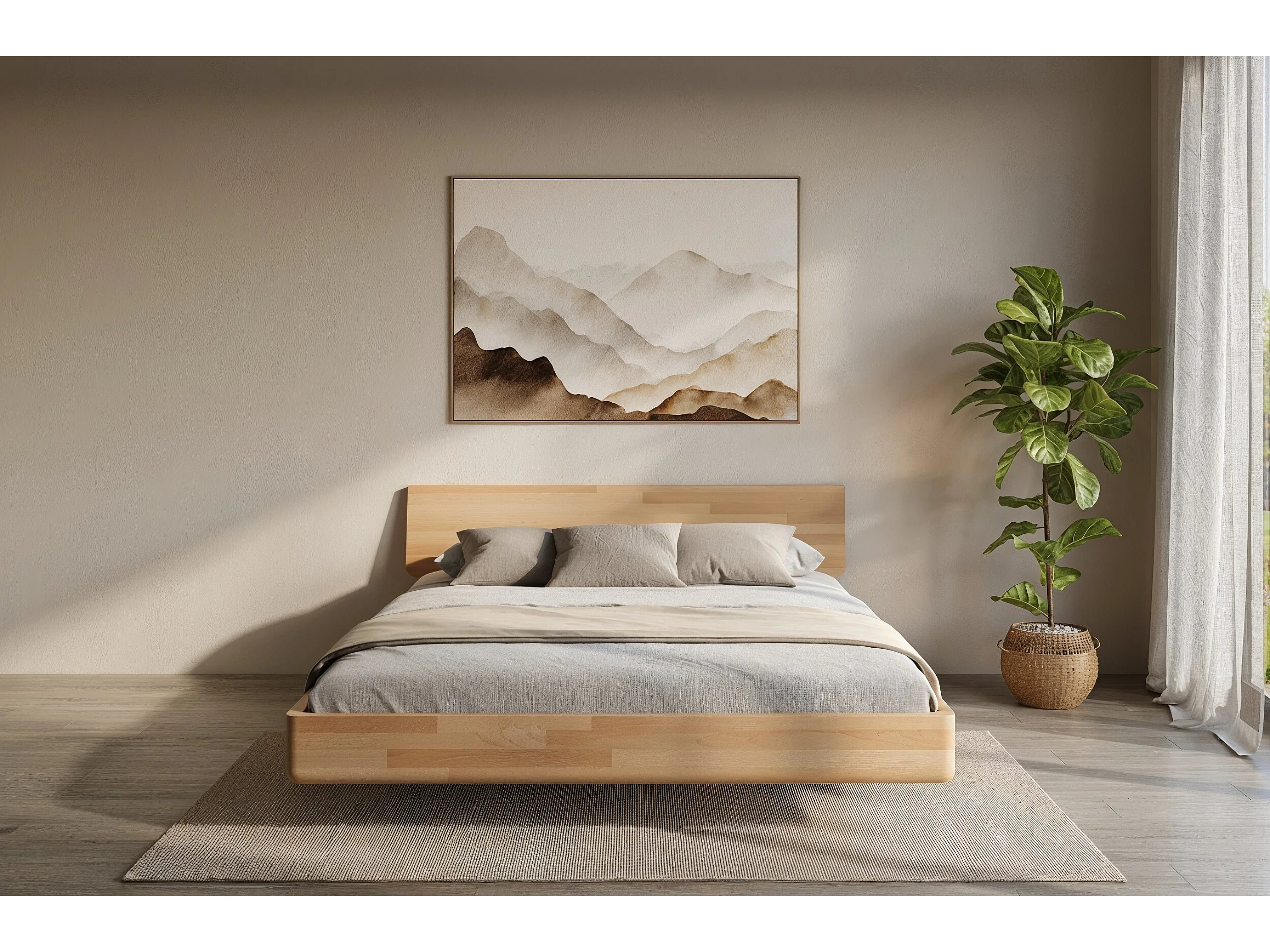 Lit flottant en hêtre massif LENA / 200x200 cm, couleur naturelle