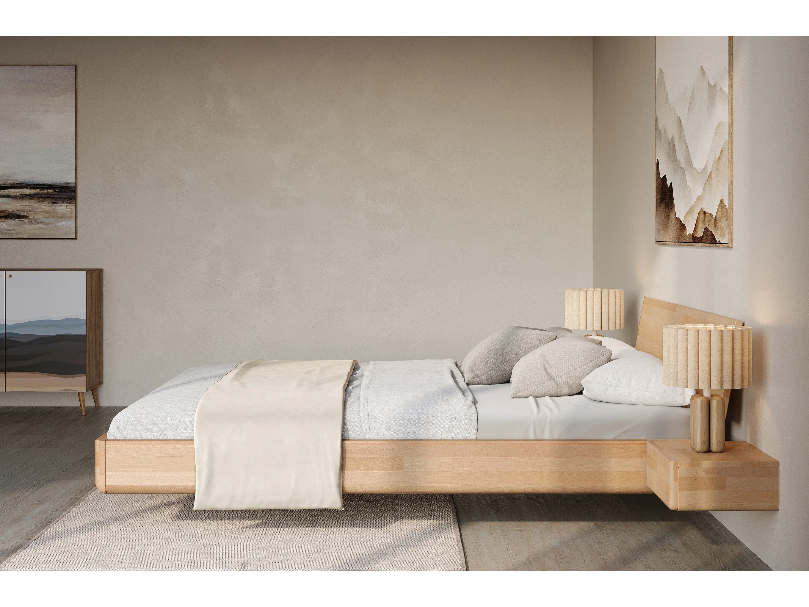 Lit flottant en hêtre massif LENA avec chevets / 120x200 cm, couleur naturelle