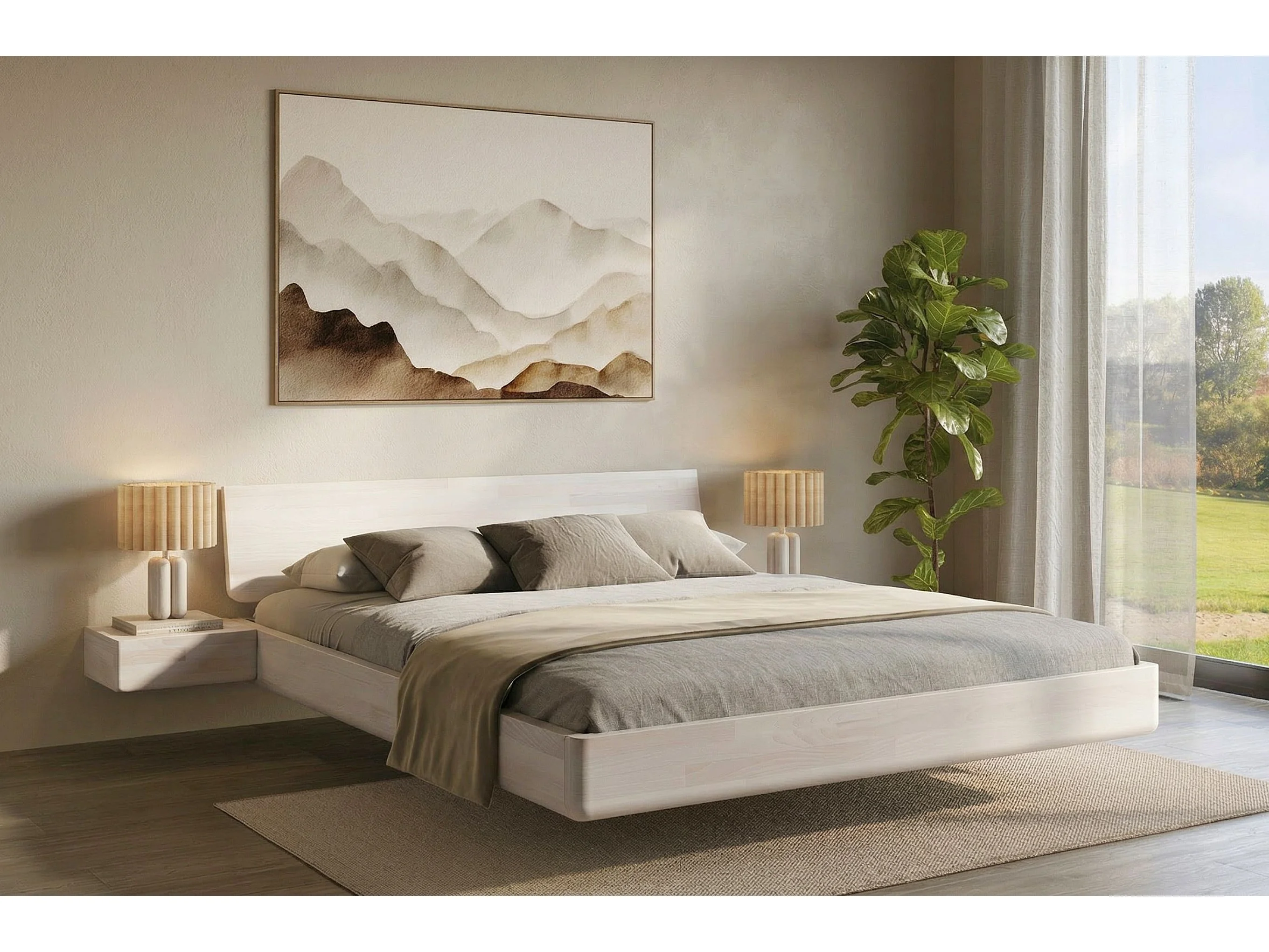 Lit flottant en hêtre massif LENA avec chevets / 160x200 cm, couleur blanche