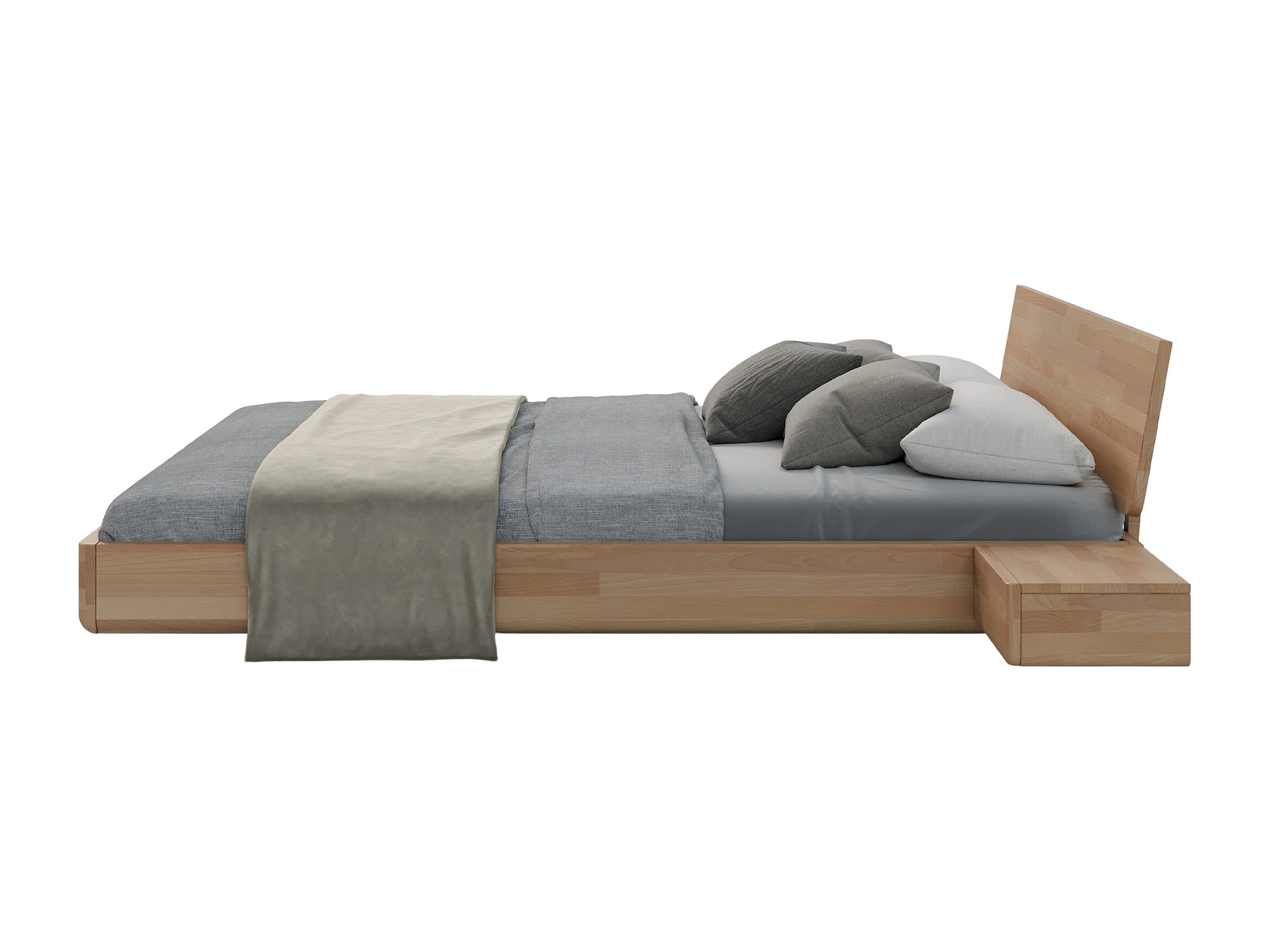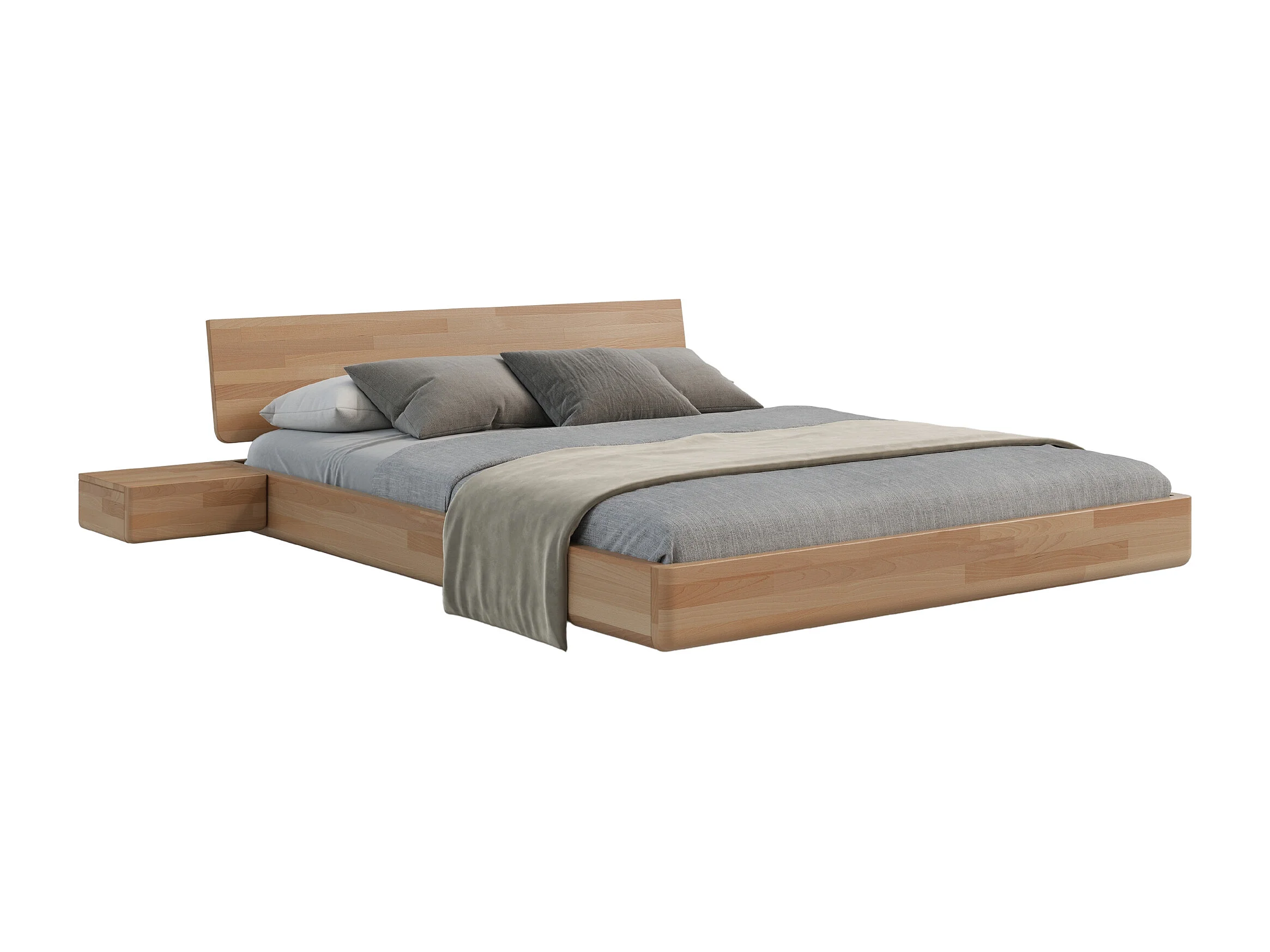 Lit flottant en hêtre massif LENA avec chevets / 160x200 cm, couleur naturelle