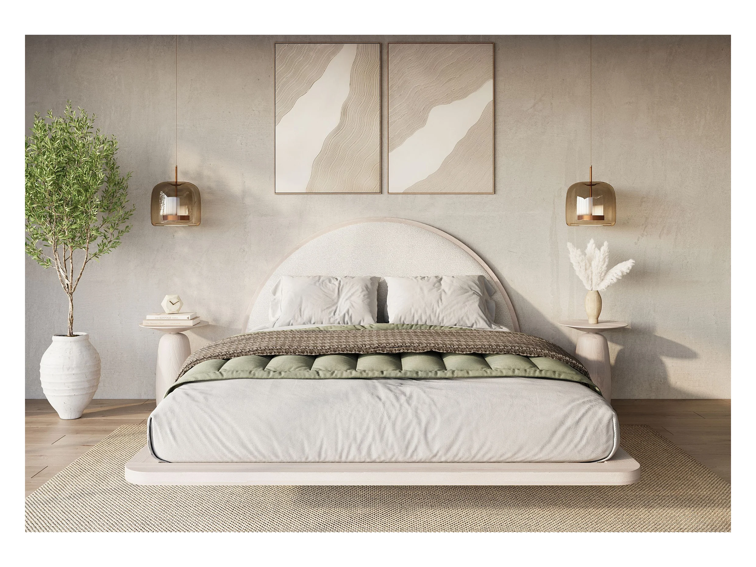 Lit flottant en hêtre massif MOMOKO / 120x200 cm, couleur blanche