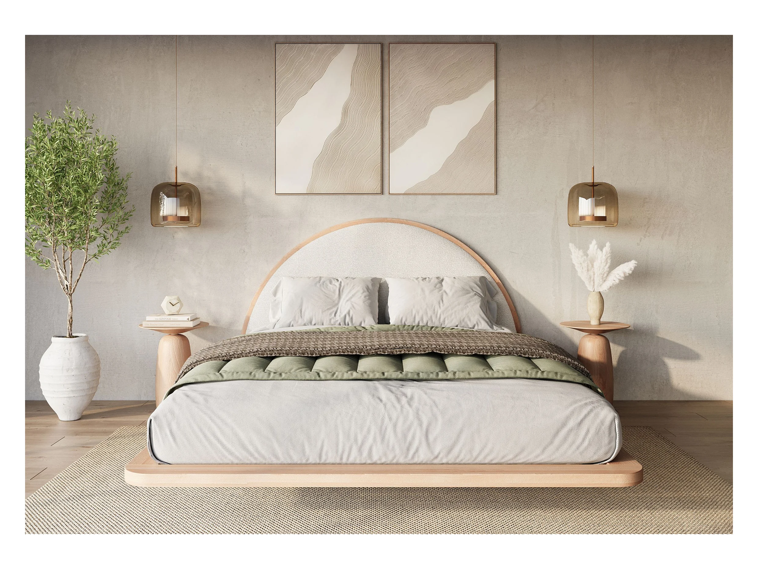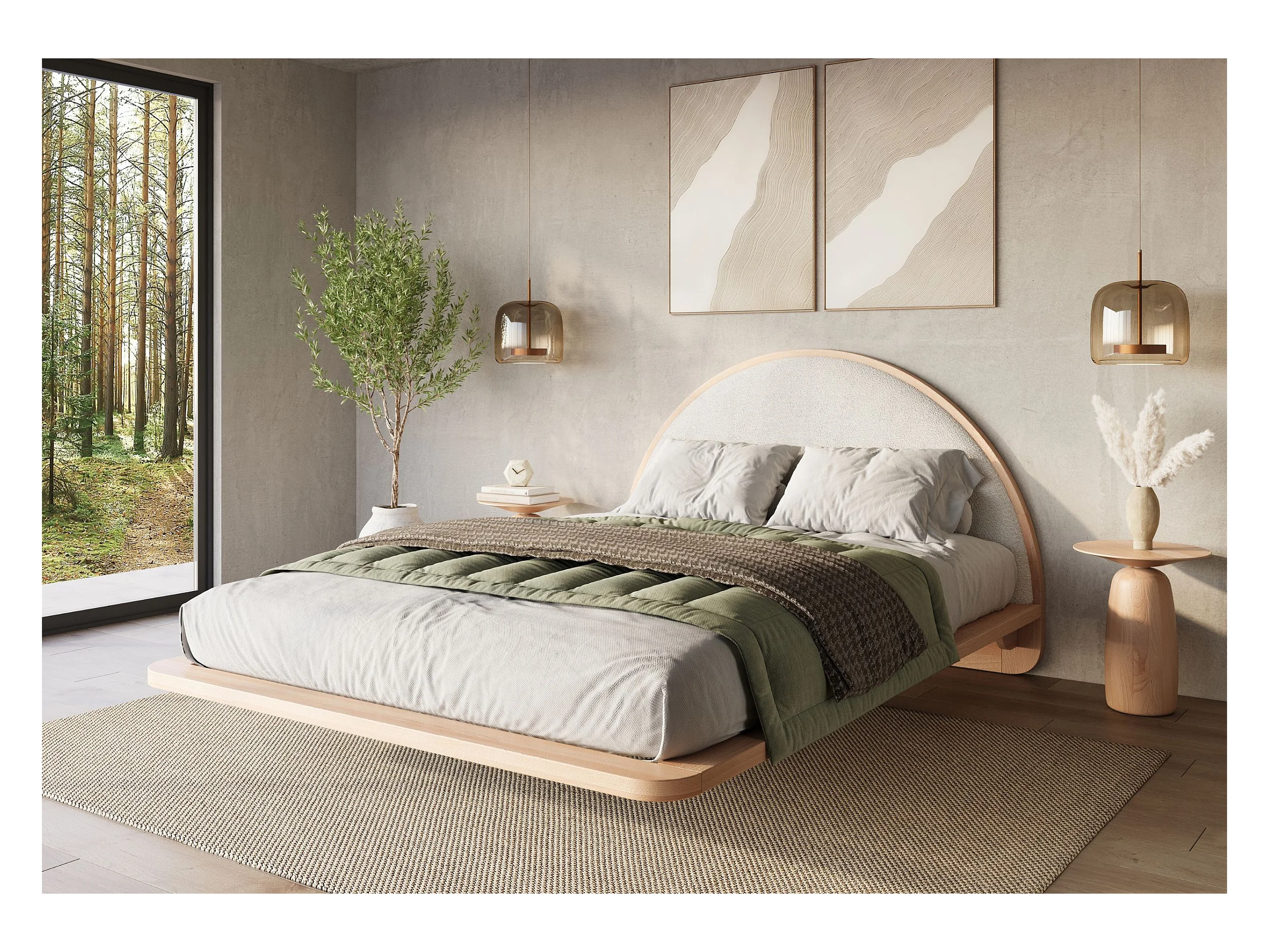 Lit flottant en hêtre massif MOMOKO / 140x200 cm, couleur naturelle