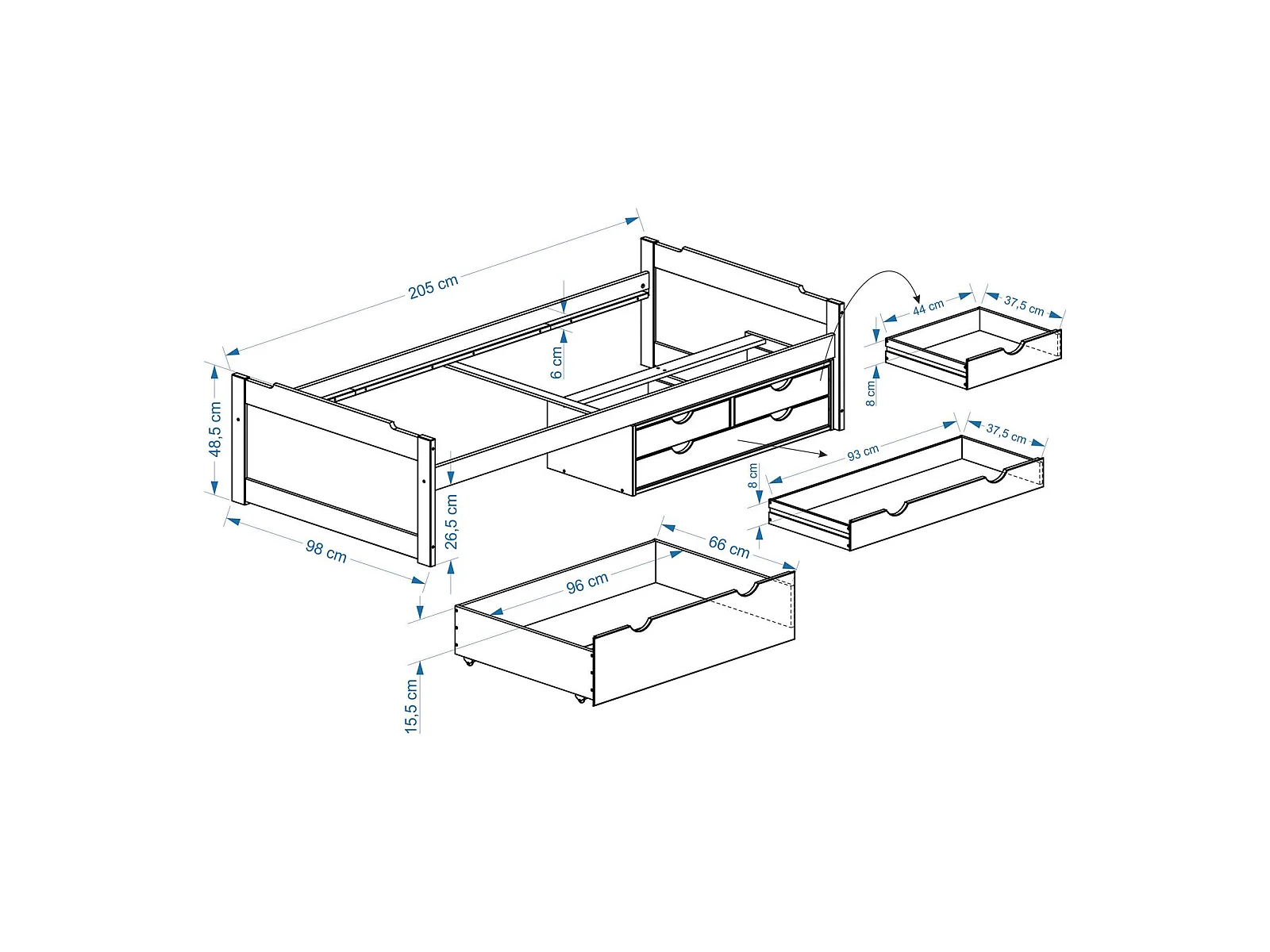Lit fonctionnel ANDREA en pin massif lasuré blanc et rose 90 x 200 cm, lit pour enfant avec rangement