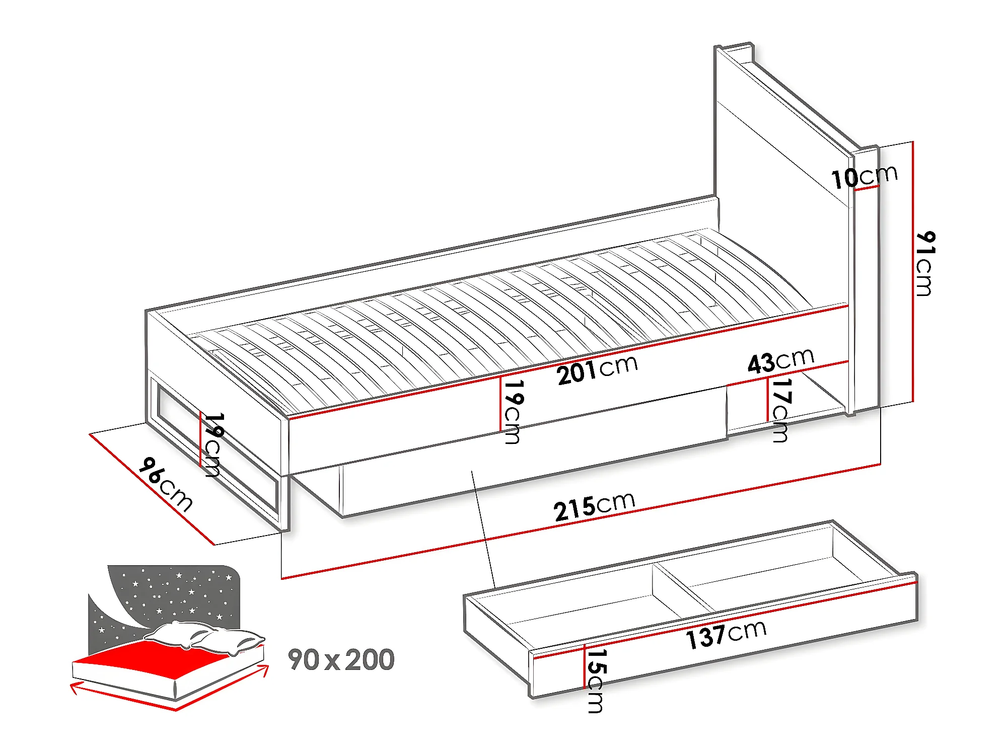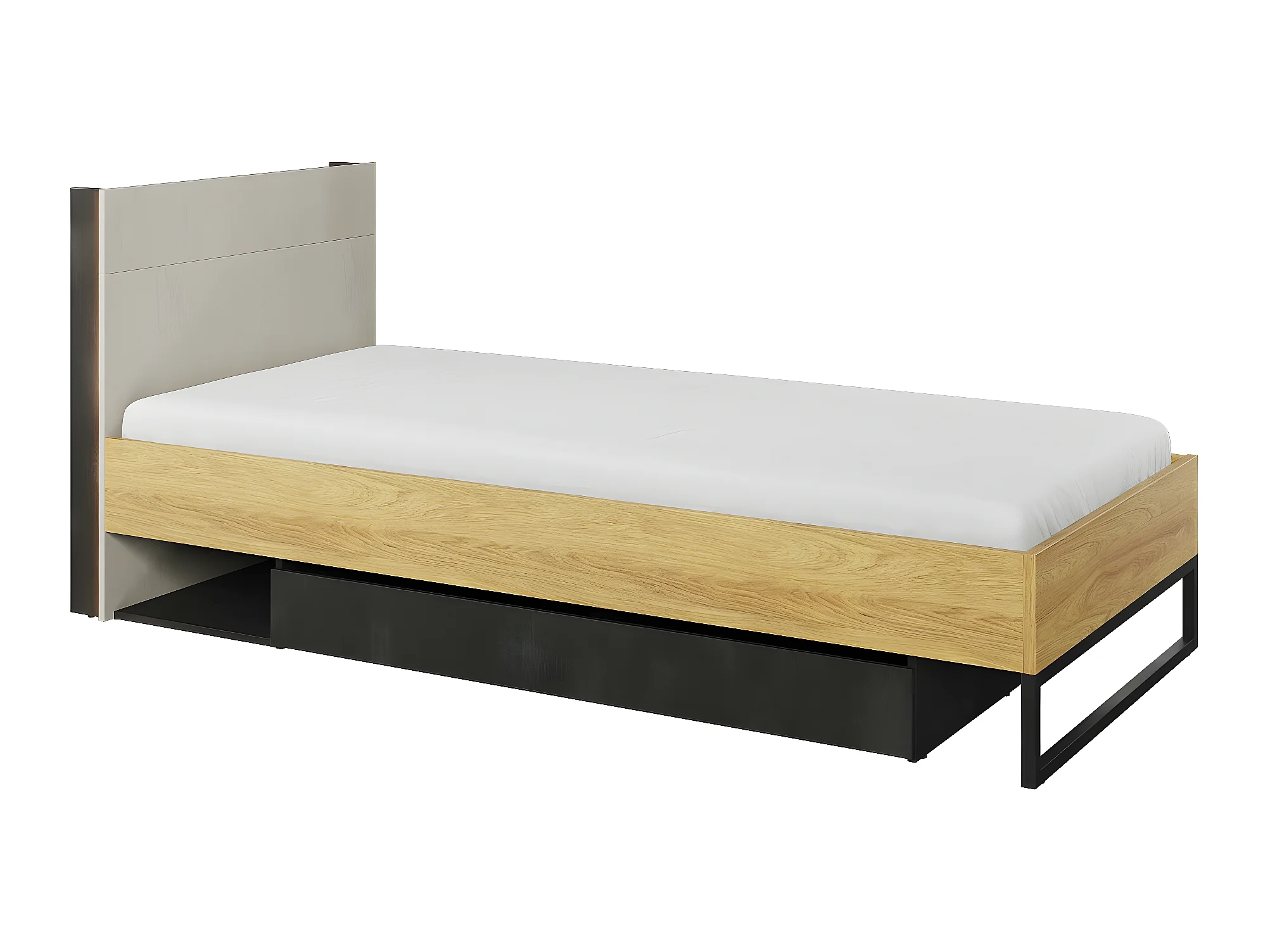 Lit Orlbale 116, Unique, Brun clair, 90x200, Stratifié, Disponible, 96x215x91cm