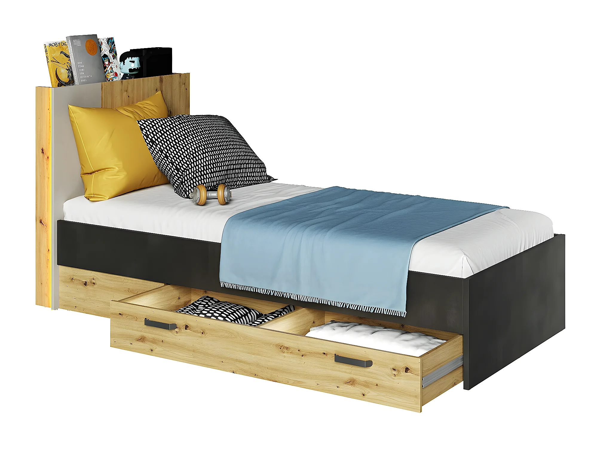 Lit Orlveno 110, Unique, Brun clair, 90x200, Stratifié, Disponible, 96x217x100cm