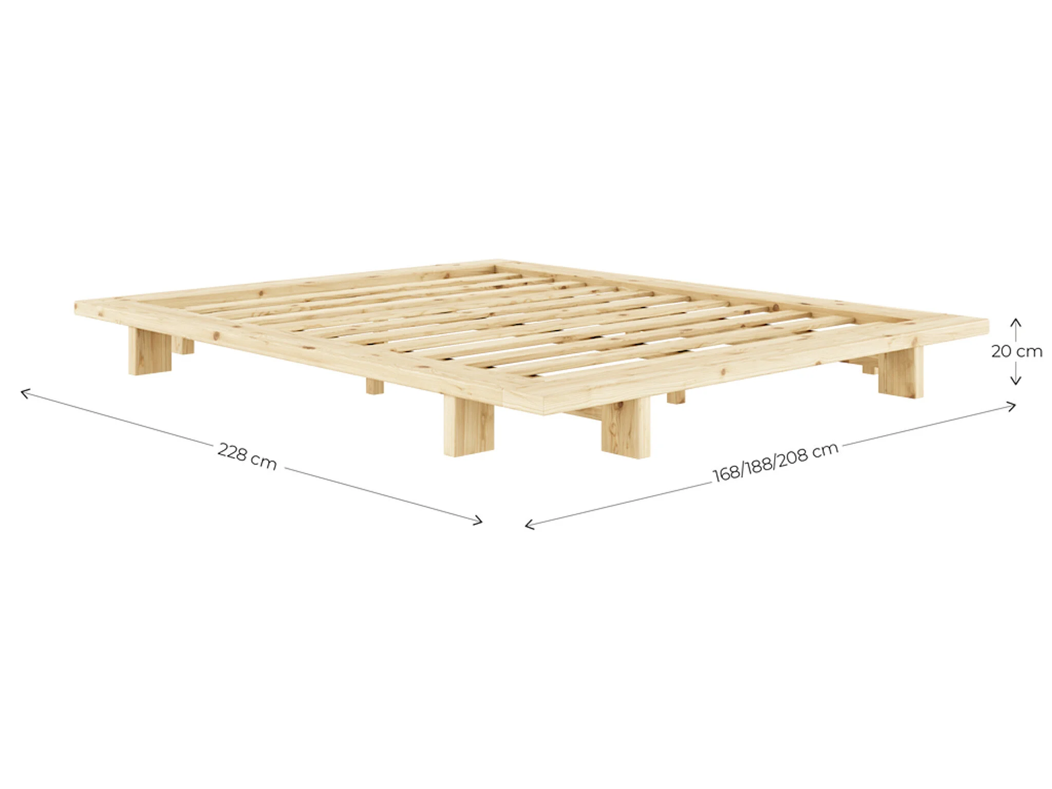Lit futon JAPAN en pin massif foncé style japonais 140x200