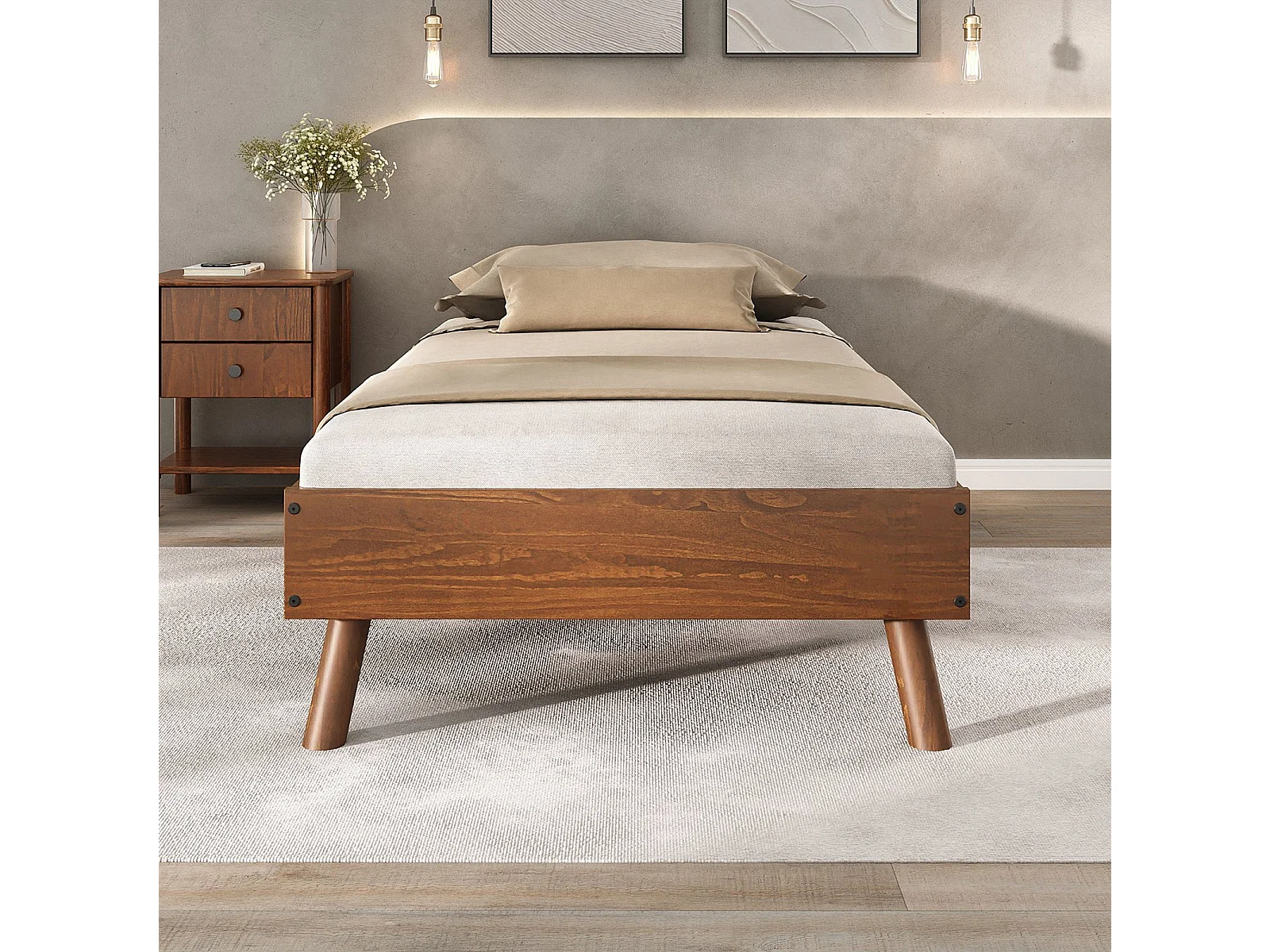Lit futon KARRI simple pour adulte, 100 x 200 cm, 1 place, en bois massif coloris châtaignier
