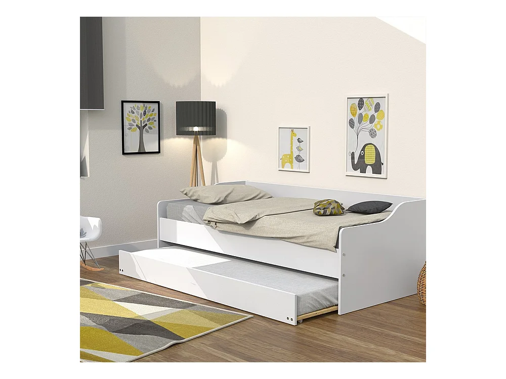 Lit gigogne SWEET 90x200 + 2 sommiers + 1 tiroir-lit/ Blanc