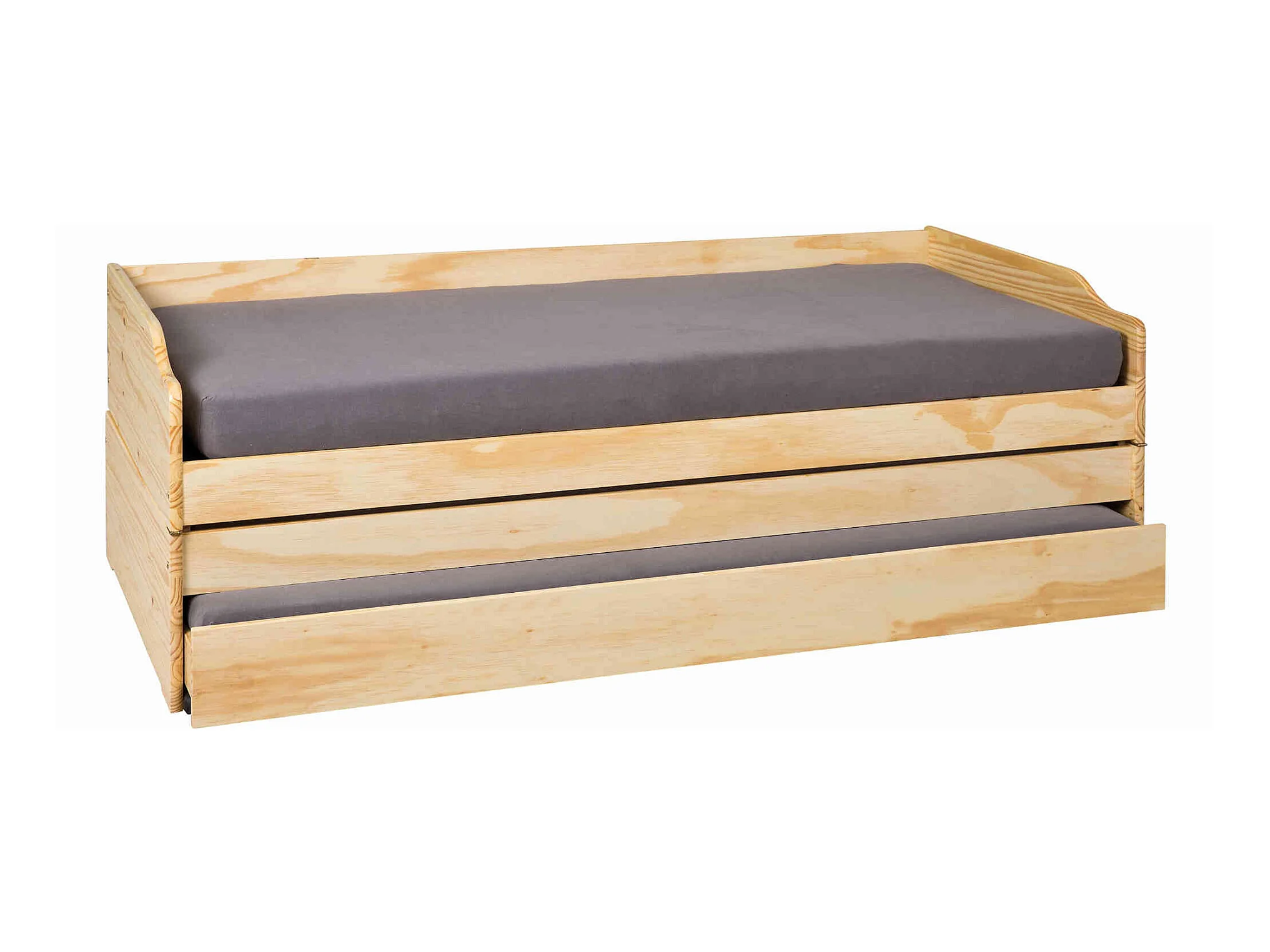 Lit gigogne 3 couchages en bois massif chêne clair 90x200 - LT12015
