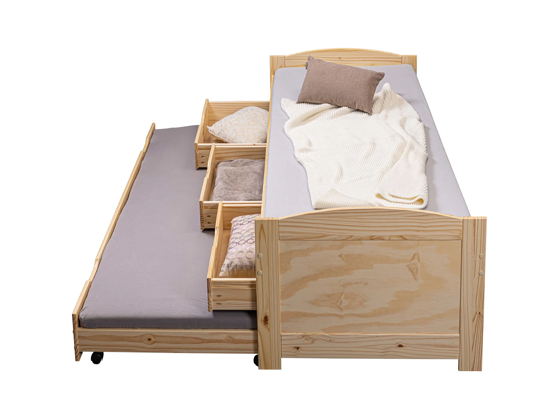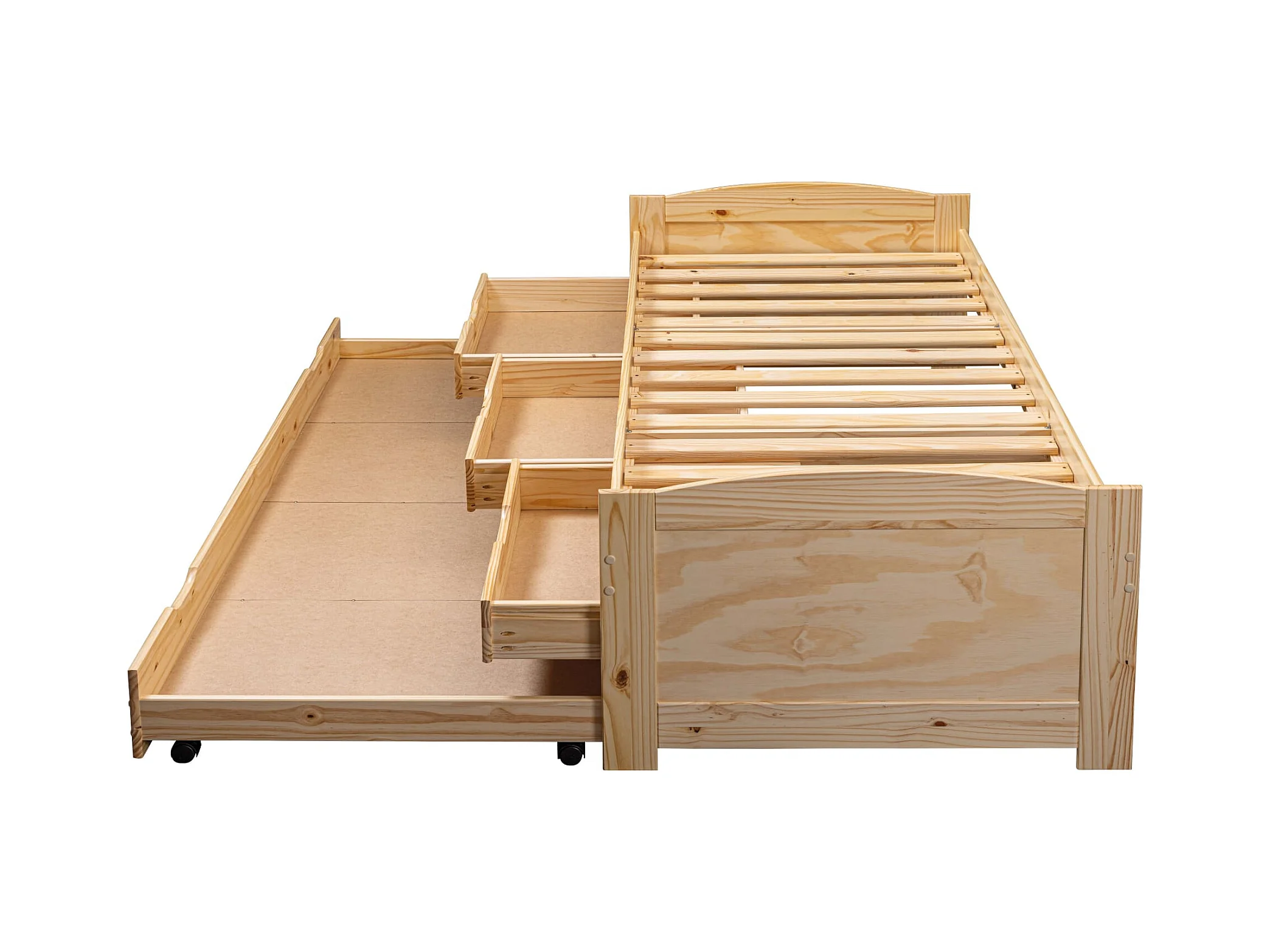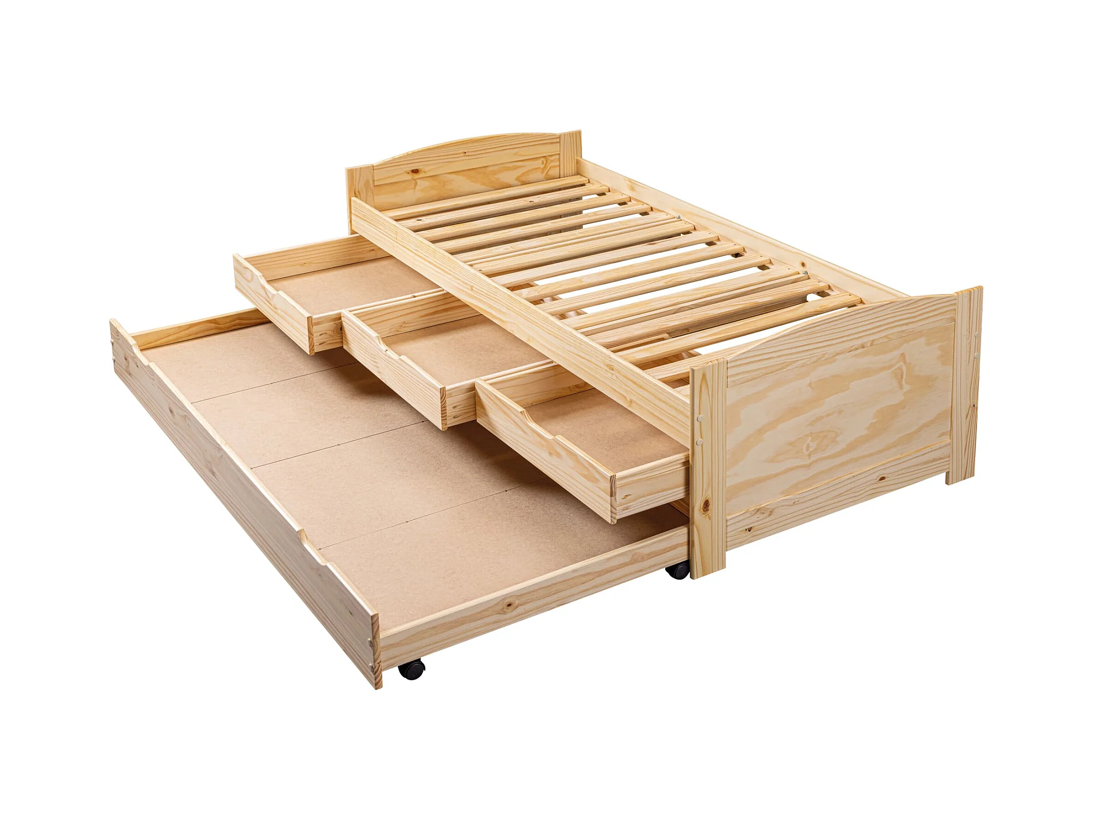 Lit gigogne 3 tiroirs en bois massif imitation chêne clair 90x200 - LT12006