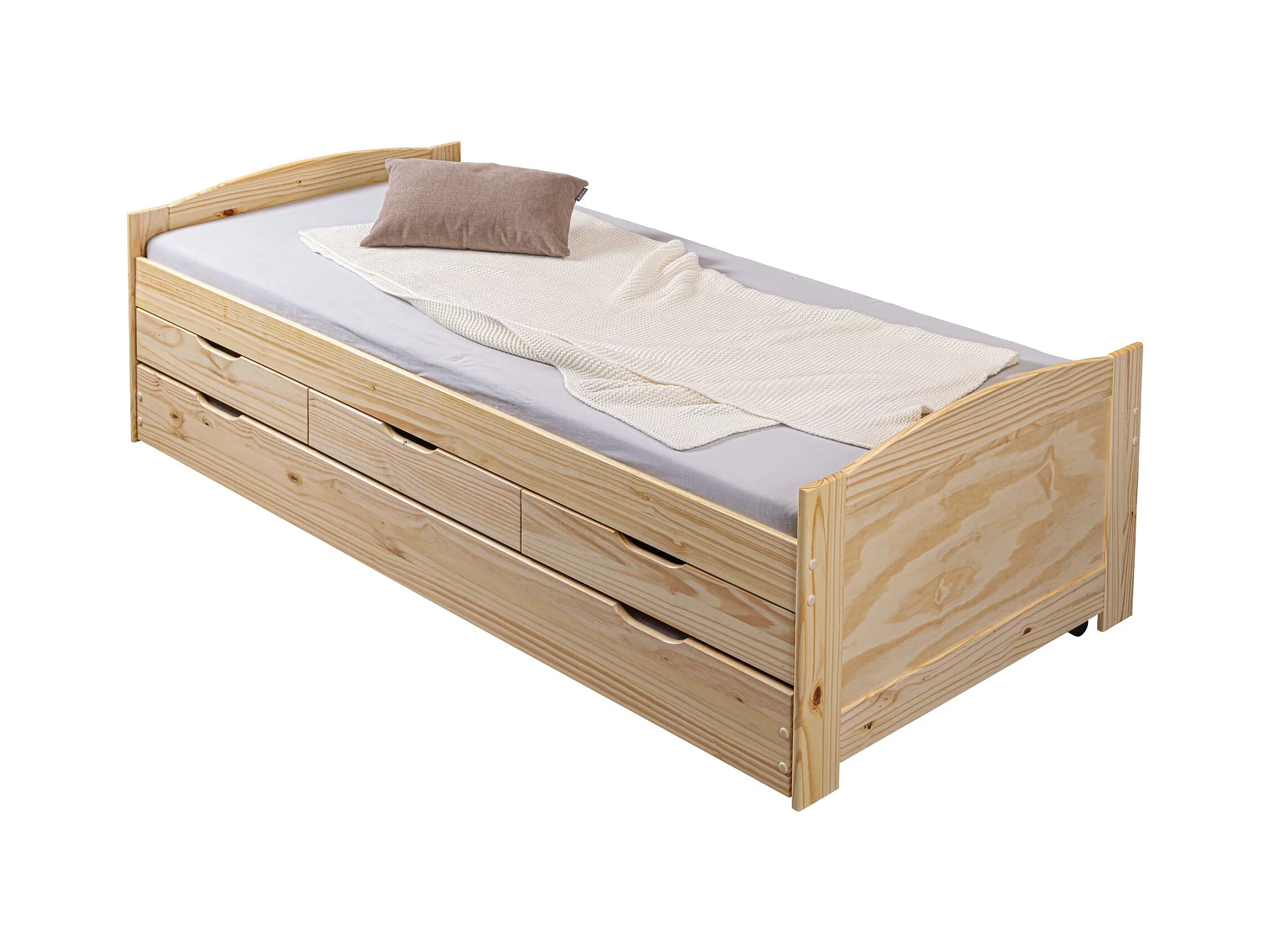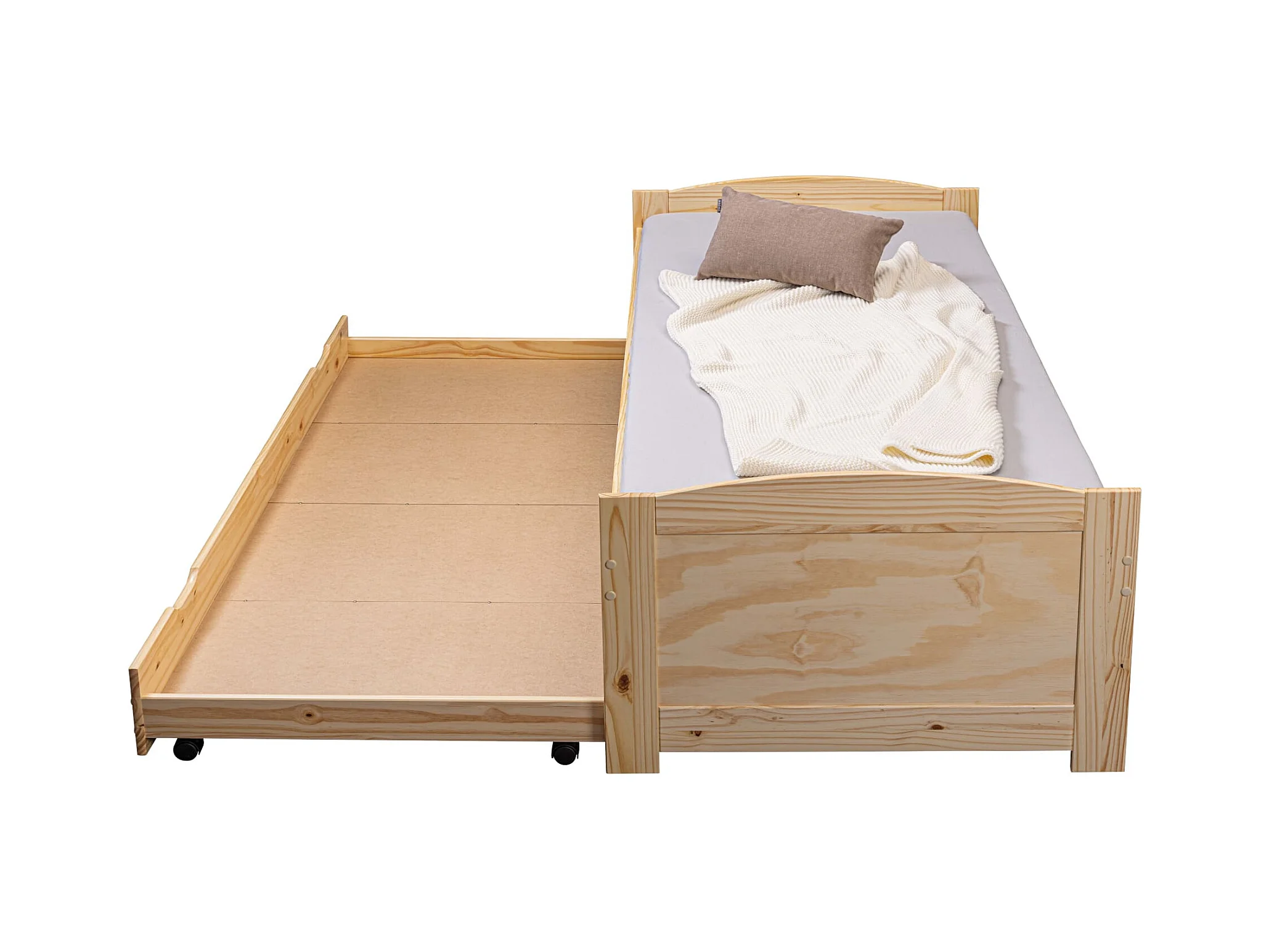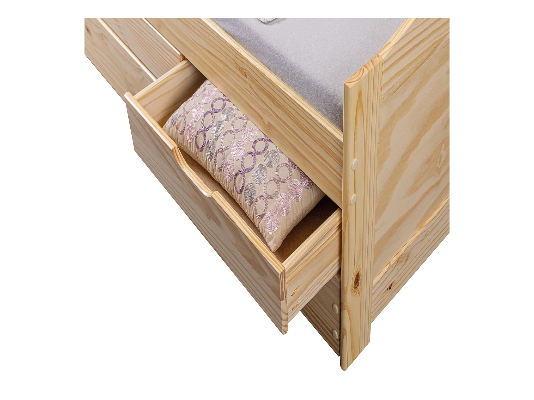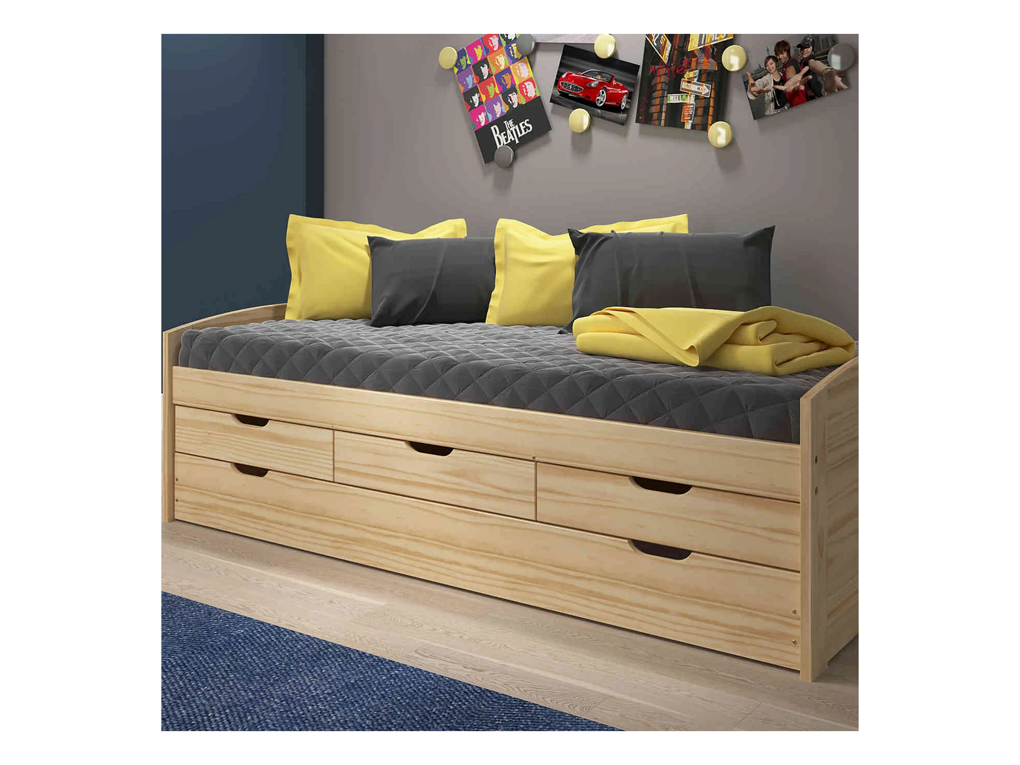 Lit gigogne 3 tiroirs en bois massif imitation chêne clair 90x200 - LT12006