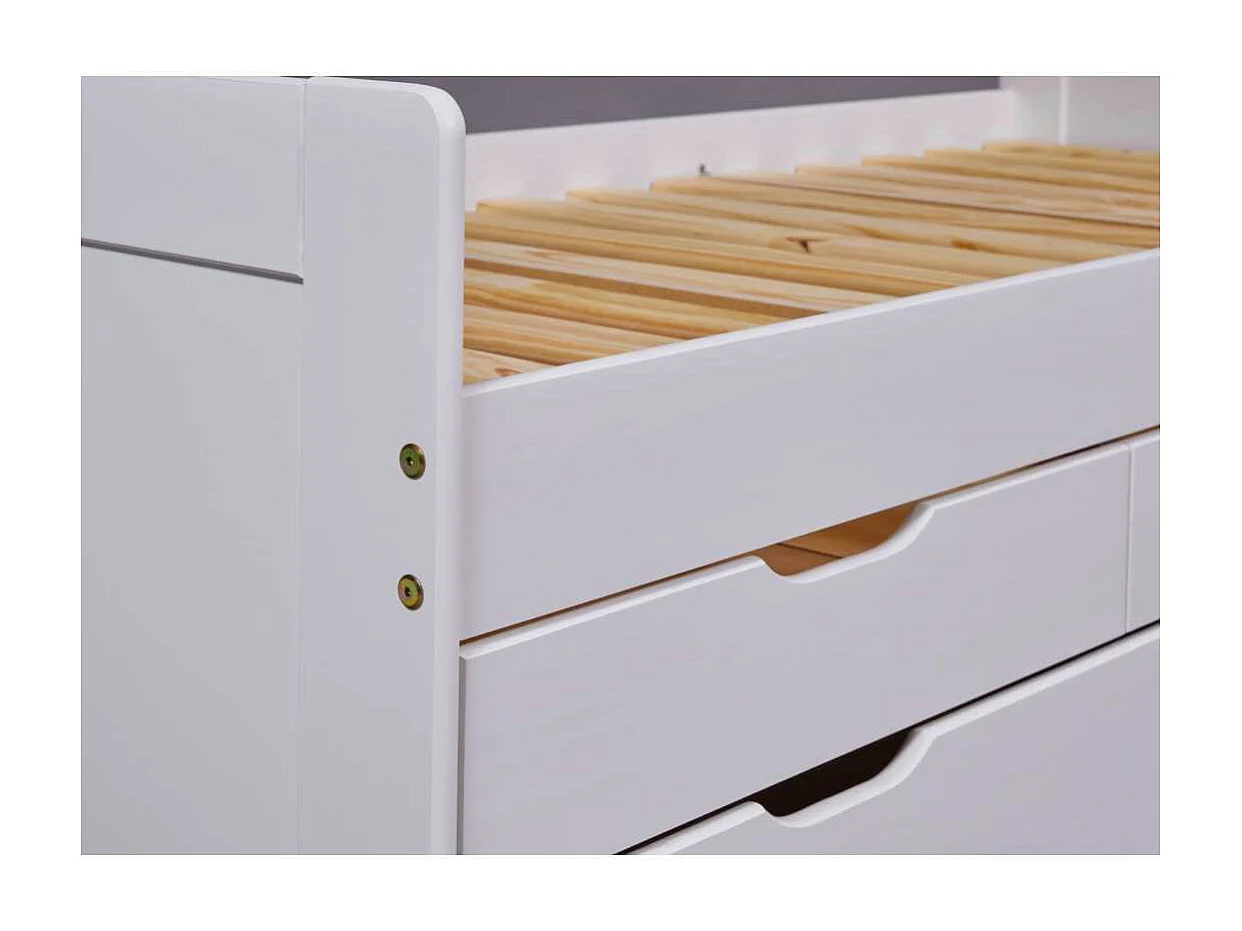 Lit Gigogne 3 Tiroirs & Sommier "Emy" 90x200cm Blanc