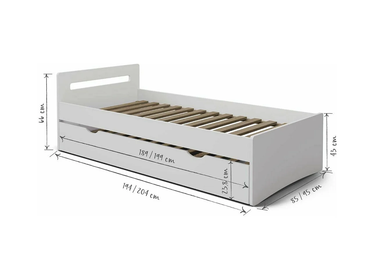 Lit gigogne 80x190 cm bois massif bois LEO