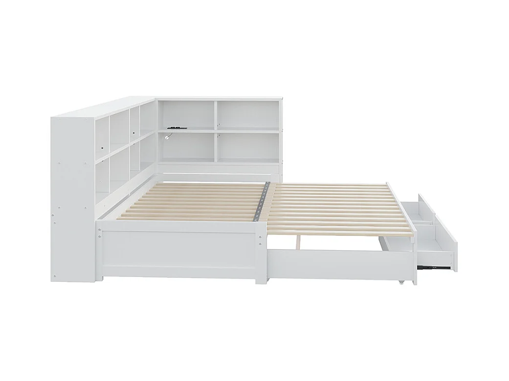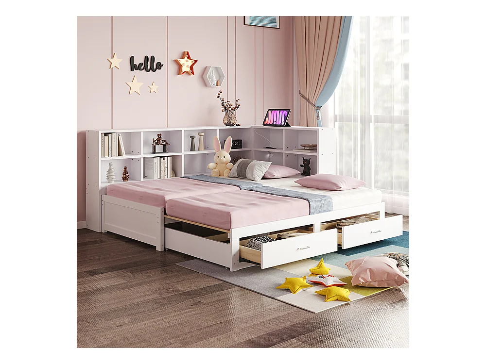 Lit gigogne 90/180 x 190 cm, avec compartiment de rangement, prise européenne, tiroir,blanc