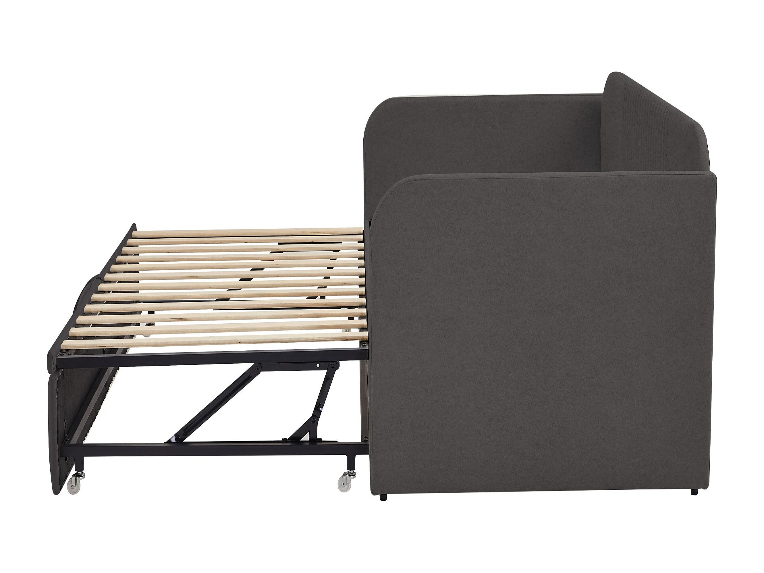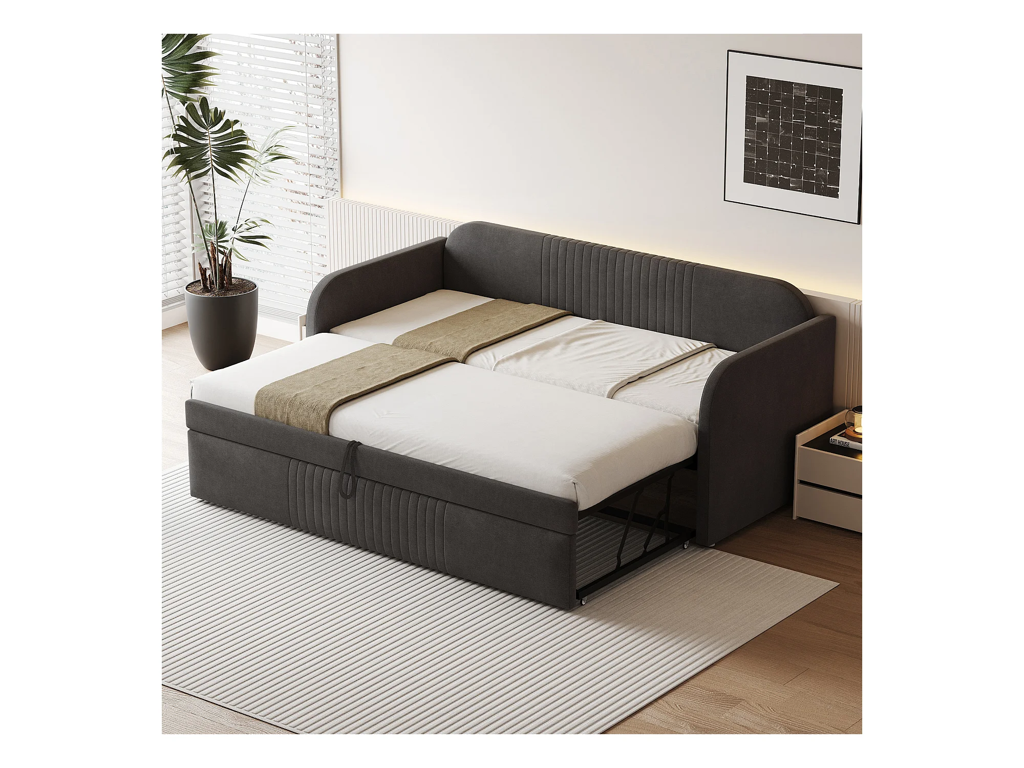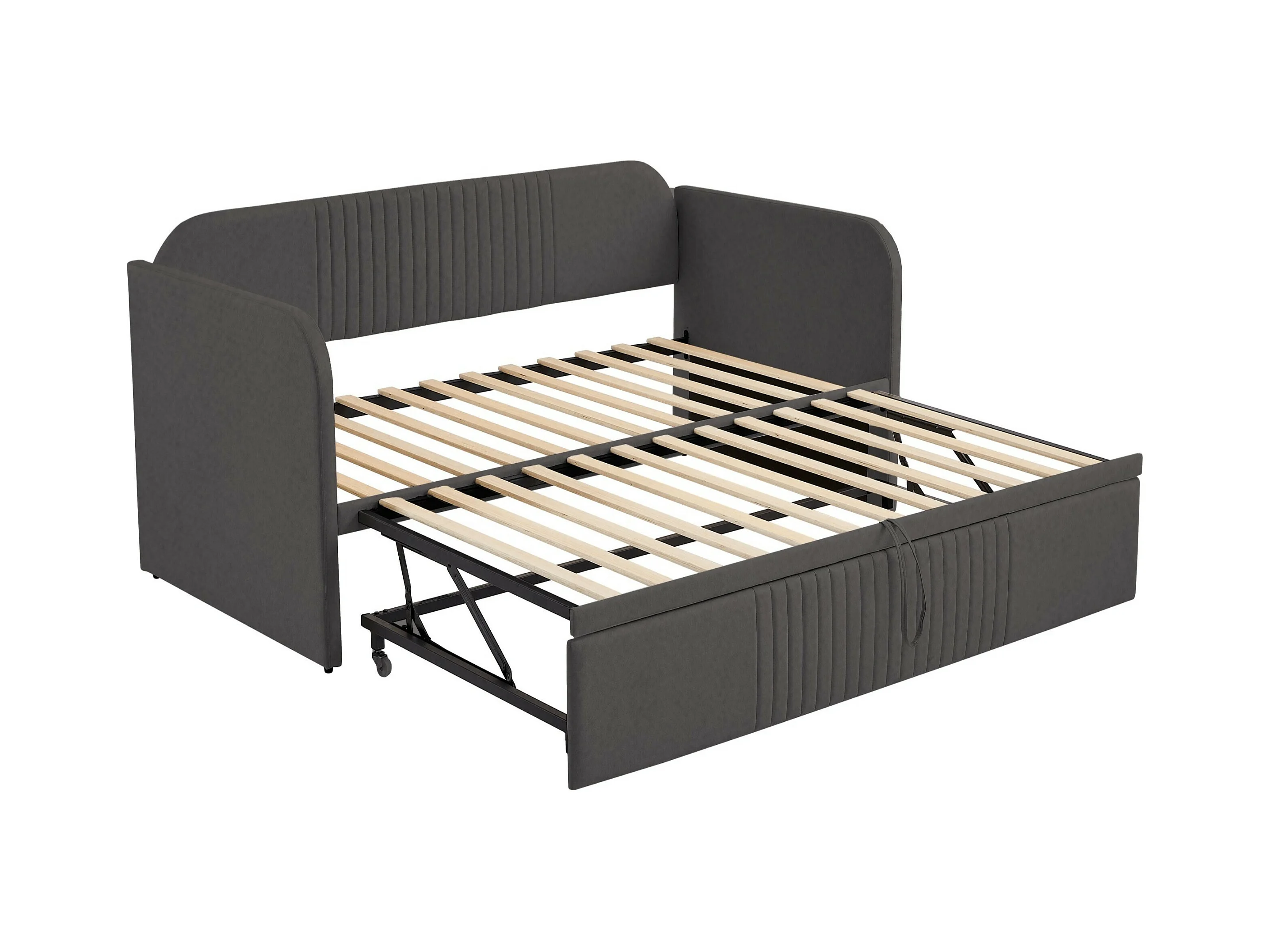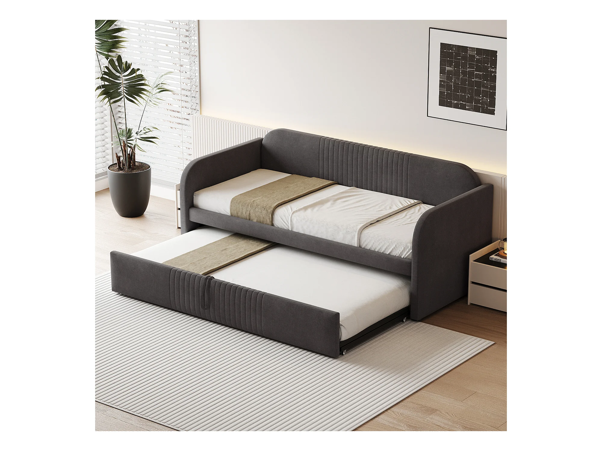 Lit gigogne 90/180x190 cm - Lit adulte avec sommier à lattes en bois - lin gris - sans matelas