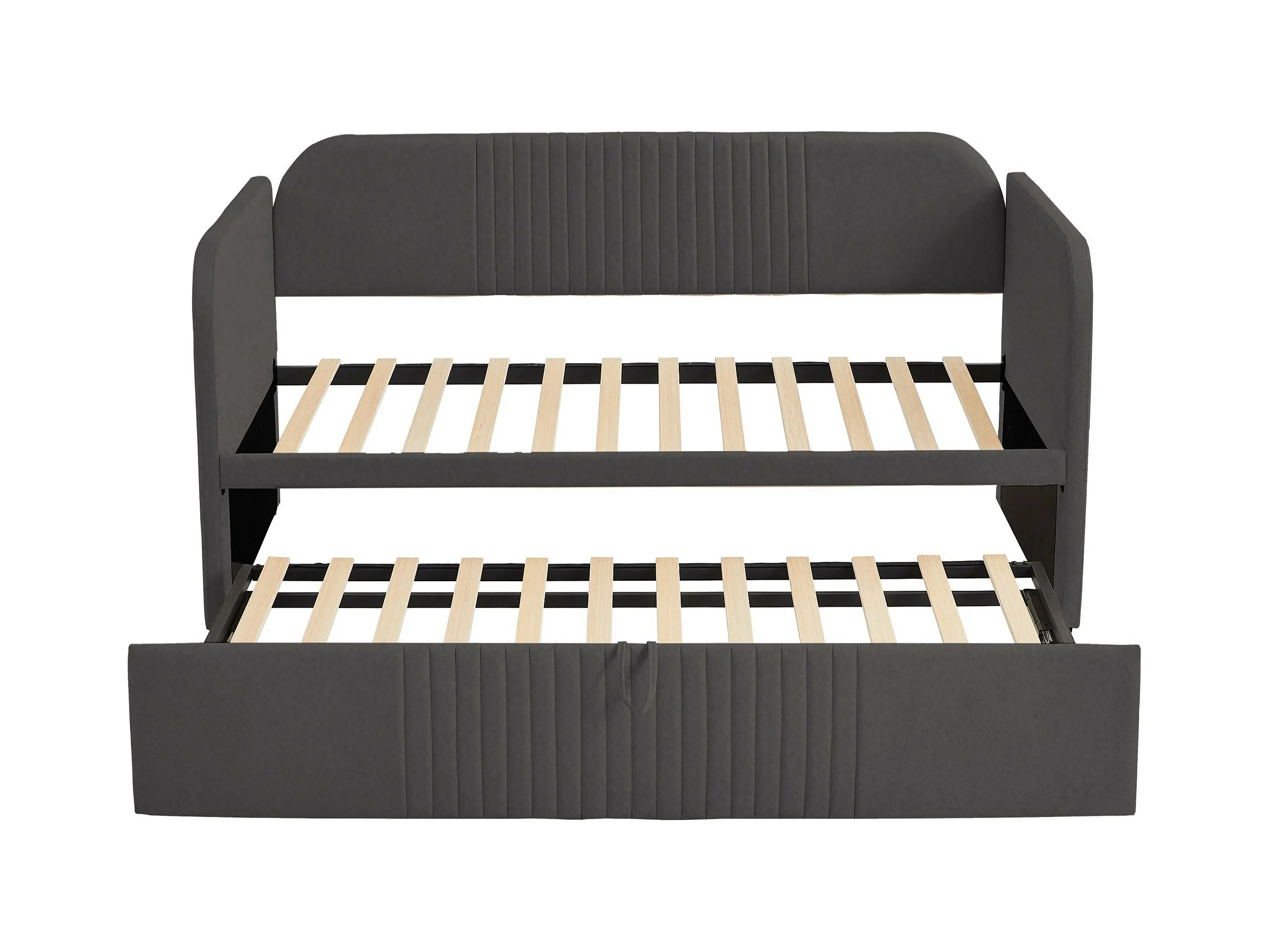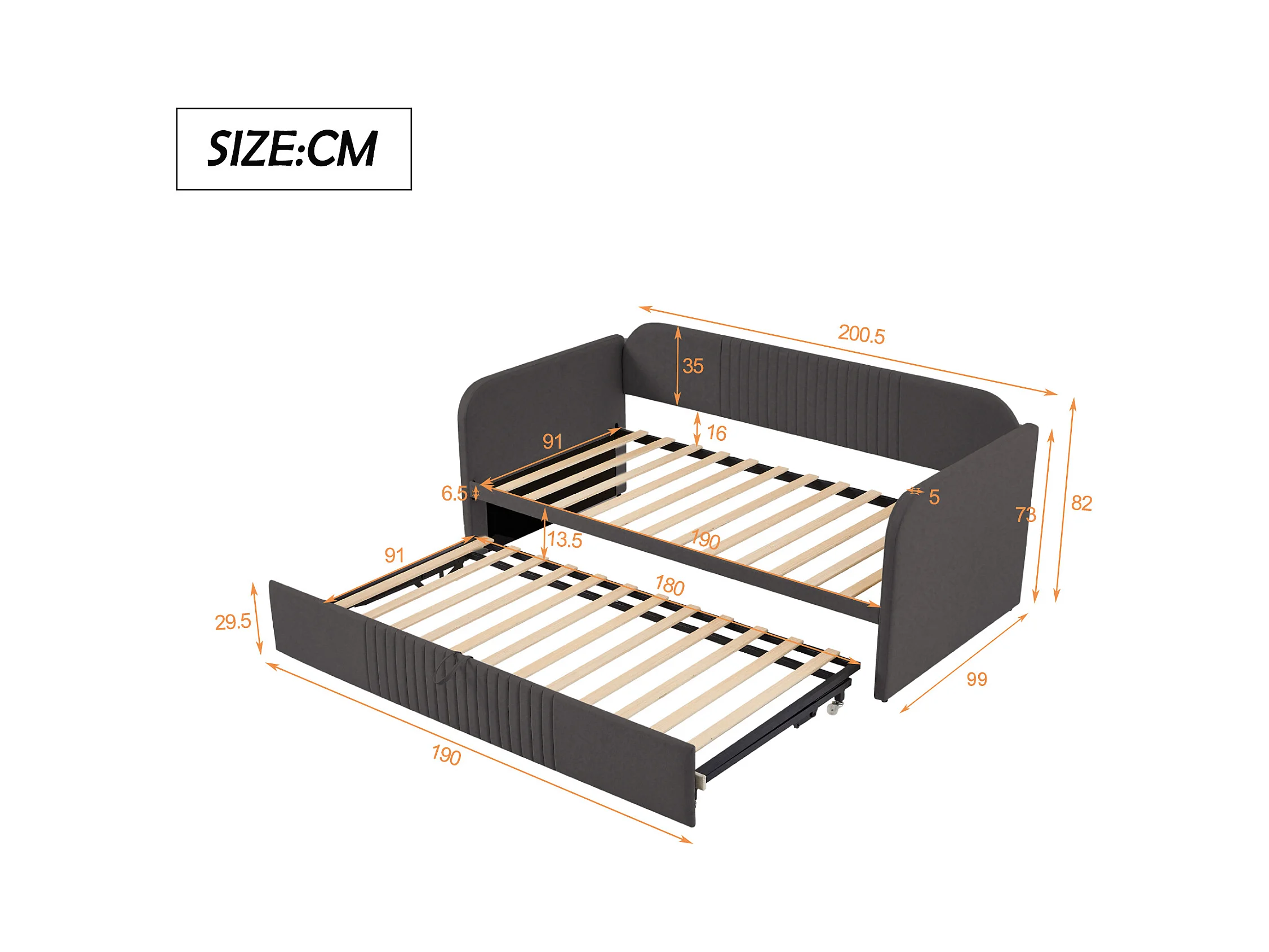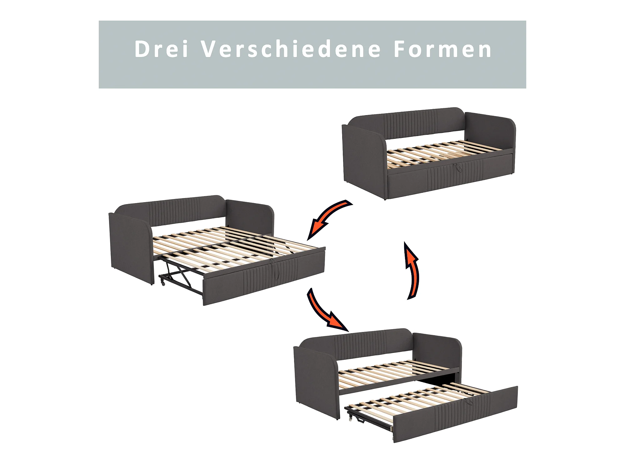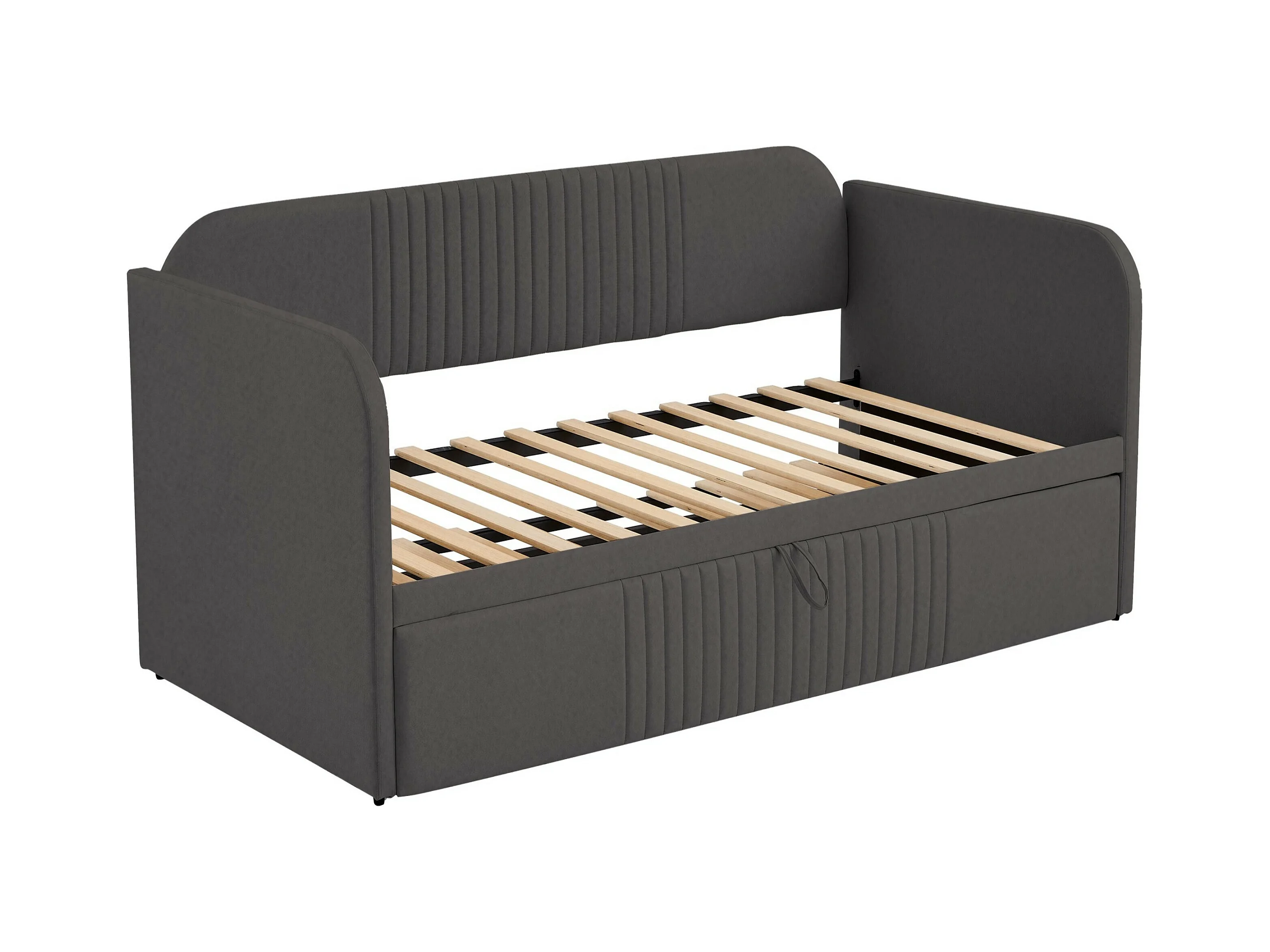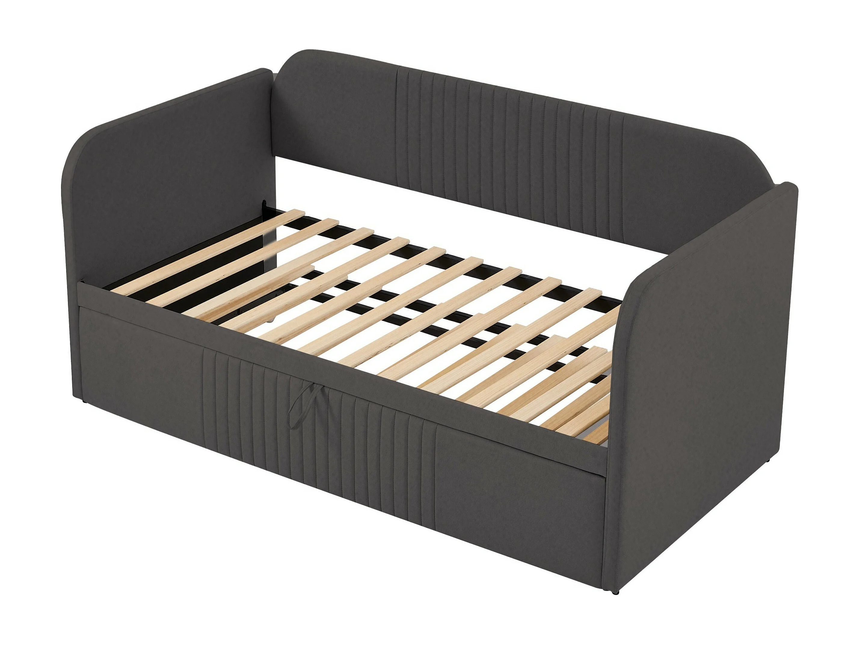 Lit gigogne 90/180x190 cm - Lit adulte avec sommier à lattes en bois - lin gris - sans matelas